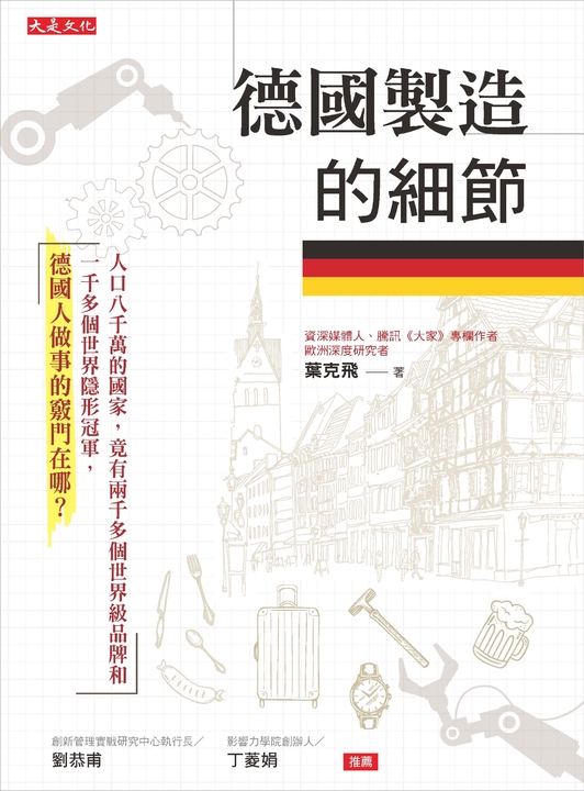 內容簡介 提到德國,你一定知道: .賓士、BMW、保時捷、愛迪達、RIMOWA行李箱、朗格錶……都是德國品牌; .哲學家尼采、詩人歌德、音樂家貝多芬和巴哈都出生於德國; .格林童話故事的故鄉(發源地)在這裡; .足球隊曾奪得4次世界盃冠軍; .德國啤酒好喝、豬腳美味、香腸種類超過1500種、做黑森林蛋糕得依照國家標準…… 但你很可能不知道:在英國、法國完成工業革命時,德國還是個農業國, 現在享譽世界的「德國製造」(Made in Germany) 曾是帶有侮辱性的符號, 是什麼原因翻轉了「德國製造」? 資深媒體人、歐洲深度研究者葉克飛, 多年來走訪德國數次,找到了德國人嚴謹做事卻從不加班的竅門。