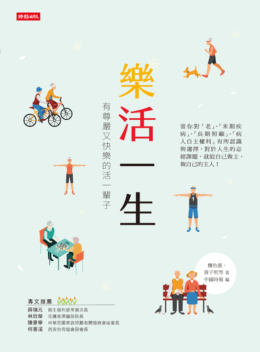 內容簡介 有尊嚴地活到最後一刻「老」、「末期疾病」、「長期照顧」、「病人自主權利」人生的必經課題,自己人生,自己做主!◤這是中國時報廣受好評「樂活一生」的系列專題改編集結,書中提到關於緩和醫療、失智症病人、日間照顧、居家照護、居家安寧……等末期疾病的照護的問題,全是來自臺灣都會區及偏鄉部落的真實故事。這裡有醫師及照護團隊的經驗分享,也有病人及家屬的心內話。◤有助於每個人了解關於「老」,以及「末期疾病」、「長期照顧」、「病人自主權利」……等人生必經的課題,是人人必經的歷程。◎衛福部長陳時中在醫院為臨終的父親拔掉呼吸器,父親牙齒一時間崩落,讓他自責,為何沒讓父親選擇在家走完人生最後一程。◎萬芳醫院居家安寧團隊不惜路途遙遠,來到貢寮雙溪肺癌病患盧張雪子的家,不但為她帶來止痛藥物,更為她帶來信任與關心。◎失智的李瑞傳阿公,總是忘記太太已經離世,每天都在等待回家就能看到太太,直到看到太太的牌位才恍然想起太太已經不在了,日復一日。◎台中石崗獨居的林阿伯,原本以為自己會孤獨潦倒到老,沒想到在長照日照中心活的更豐富。◎失智的顏奶奶,努力移除鼻胃管,終於再次嚐到最喜歡的水果泥滋味。◎巴金森氏症的陳阿伯,有太太在旁照顧,努力生活、攜手一生。◎資深主播傅達仁赴瑞士以安樂善終方式結束自己的一生,讓社會再次掀起安樂死合法化的討論。如何面對死亡?隨著時間的演進及民眾觀念的扭轉,改變正慢慢的累積著,每個人都應要先做好準備。本書在呈現台灣社會對於生命關懷與圖像的同時,也希望能成為實用的工具書,讓每個人在樂活善終這條路上,走的更加圓滿、無憾!【各界推薦】很高興中時以「樂活一生」為主題集結生命故事成冊,並以充電站方式教導大家認識安寧療護、預定醫療決定等,同時讓國人瞭解我國政府因應高齡化人口所發展的政策及可運用的方式,期待本書能觸動國人開始反思生命的期盼,對善終選擇有所認識,做自己生命的主人,維護生命品質。──衛福部常務次長╱薛瑞元臺灣在2018年四月進入高齡社會,每7人當中就有1人是65歲以上的長者。甚至推估到了2026年,臺灣的老人比例將佔總人口 20%,成為超高齡社會,「老」已無可避免,站在醫療的角度,不只治療疾病是目的,如何幫助民眾健康變老,以及如何幫助病人有尊嚴的終老,更是重點。──花蓮慈濟醫院院長╱林欣榮這本書,就是「長照教練」與「學長姊」的綜合,其中介紹了長照家庭所歷經的殘酷凶險,但也看到一線曙光,更多專業人士進場成為「新家人」,相信能化解不少人的擔憂恐懼。──中華民國家庭照顧者關懷總會秘書長╱陳景寧在此之前的15年中,陪同父母走完他們人生的最後一段路,深感每個人這段必走的路,如果沒有準備,走起來會不太容易。……中國時報長期關懷社會,希冀中國時報的媒體力量做「樂活一生」系列報導,讓多一點人重視此事,及早準備安排老之將至。──西安台商協會副會長/何善溪