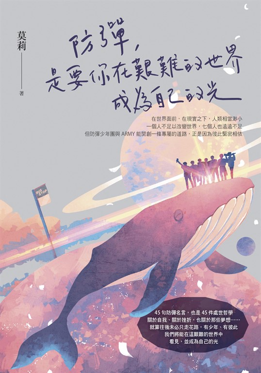 內容簡介 不只愛舞台上的他們,也愛著只是身為人的7個少年因為愛,想更了解他們的語言;因為崇拜,想吸收他們的價值觀;因為防彈,想努力成為更好的人,想學習他們看待世界的方式打開這本書,我們將一起回憶、共享感動回顧少年們的人生觀、回憶一起走過的艱難、回首逝去的黯淡就算往後的人生未必只走花路,有少年、有彼此我們將能在這艱難的世界中看見,並成為自己的光本書精選防彈少年團於社群平台、直播、綜藝節目、演唱會等場合分享過的45句話,其中可能包含你特別有共鳴的、你看過但漸漸淡忘的,或者不曾注意過的。藉由文字與章節的安排,跟著作者莫莉一同回顧防彈的生活與價值觀,從已知、未知的角度探索他們說過的話,或許你會有全新的發現……可能是原諒曾經讓自己受傷的人,可能是重新審視不同狀態的自己,也可能是與生命中某個階段的自己和解。每篇文章結束後都安排了一篇〈莫莉的生活提案〉,希望讓你對於自己能從何做起有一些頭緒,或者更具體感受自己的變化。全書分為五個章節:〈自我與自信〉SUGA:「你明是地球,為何總將自己視為小島」從自我出發,談論關於「自己」與「自信」的議題。生命中,會與自己相處最久的是自己,所以希望你最關心、最重視的人也是自己。〈低谷飛翔〉RM:「荊棘遍布與噬人浪濤雖使人滿身傷痕,但我深信我們心中仍有一隅將不被侵蝕」雖處低谷,仍可飛翔。人生旅途踏出一步後,可能隨即面臨現實的考驗。面臨挫折、徬徨時,你或許能在此獲取安慰的力量,並試著相信未來也許沒有想像中那麼糟。〈透明夢想〉Jimin:「我希望各位不要感到後悔,無論何事、無論何時都不留遺憾地享受每件事物就好了」透明夢想,代表防彈對於夢的特殊解釋。透明無色的夢想,沒有大眾認知中的強迫性,可以擁有,也可以釋懷;可以自由填色,也可以恣意賦予它意義。〈那些愛,或更甚愛的_〉RM:「世界上幸福與不幸的總量是固定的嗎?那若我悲傷一點時,我希望所愛的人能快樂一些」生命中必然會有所寄託、有所依賴,這份情感可能是愛,也可能是甚於愛的任何一種情感。設計填空欄,是希望大家能自行填上腦中浮現的詞語。〈並肩前行〉Jung Kook:「願在遙遠的未來,能笑著回想我們的曾經」從自我出發、歷經幽谷、尋找目標,接著與他人互動、學習情感建立,於各方面充實自己後再度邁步前行。無論是習得快樂的方法,或是尋得喘息之地,願讀到文末時,你能如經歷一場人生旅程,從闔上書的那刻起,踏出自己的步伐。【本書使用方式】你可以在心情不好時,翻開這本書,閱讀最符合當下狀態的篇章;你也可以順著編排脈絡,從頭開始讀起,展開一場與防彈的交流。開心時共襄盛舉、難過時擁抱取暖,希望這本書像防彈一樣,成為你有悲同當、有喜共享的夥伴。粉絲界深情推薦(依首字筆畫排序)B編│編笑編哭社群經營者FBA K|BTS 防彈爆報FTBN 粉絲專頁管理員H.c│H.c的迷妹生活LJ|專職韓文家教兼7年阿米Pobbi波比|6年阿米、資深韓娛觀察者R│防彈迷因TAMON│極重度阿米/雲端名偵探炸雞|看著防彈的army::Walk with BTS陳家怡│中韓口筆譯員雪力|《MBTI 我,和我的使用說明書》作者★推薦序摘錄RM曾經說「你們皆帶著各自的獨特意義誕生」,SUGA也提到「你明是地球,為何總將自己視為小島」,BTS出道十年,有非常多的經典語句,每次都想記錄下來跟大家分享。很高興看到莫莉寫了這本書,讓大家在人生的低潮時,隨時翻開書都可以找到慰藉與力量。──雪力|《MBTI 我,和我的使用說明書》作者☆推薦文摘錄能專心堅持同一件事情,事實上非常了不起,而「追星」就是其中之一。開始追星後我深切明白,彼此扶持的力量不只存在偶像與粉絲之中,還有粉絲與粉絲之間,莫莉的書就會是這樣的一股力量、一座銜接的橋。就像RM說的一樣:우리가 서로의 의지이길.(願我們成為彼此的依靠。)──B編│編笑編哭社群經營者莫莉的文字優美細膩,能夠觸動許多人。這本書我相信莫莉一定準備得非常用心,我非常期待,也推薦大家可以一起擁有和欣賞。──FBA K│BTS 防彈爆報FTBN 粉絲專頁管理員防彈與ARMY是雙向奔赴的共進夥伴,我們相互依存,也能獨立勇敢。謝謝莫莉將他們的話語傳遞到ARMY的心上,更謝謝莫莉將無數ARMY的心聲記錄下來,用這本書寫下我們對防彈最美好的情書。若你也曾因為他們的一句話而感動,我想你會從這本書找到更多你記得或遺忘的力量。──Pobbi 波比│6年阿米、資深韓娛觀察者很感謝莫莉寫了《防彈,是要你在艱難的世界成為自己的光》這本書,將那些年帶給我力量的字字句句化為篇幅,讓更多人從中獲得能量。書裡不僅集結了防彈成員們曾經說過的話、寫過的字句,還搭配了莫莉給讀者的「生活提案」,讓讀者在咀嚼文字的同時,對「好好生活」有更明確的方向。──陳家怡│中韓口筆譯員