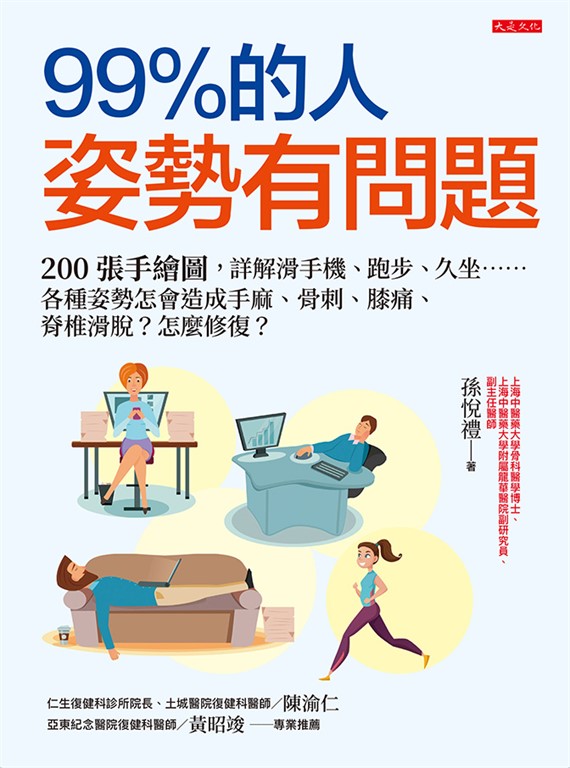 | 商品描述 | 99%的人姿勢有問題 (電子書):「低頭看手機,脖子就不舒服!」、「有點手麻。」「走沒幾步,我的膝蓋就『答答』響,有時還會痛!」「才上半天班腰就開始痛,讓我站也不是 |