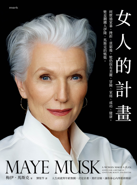 內容簡介 經歷過家暴、挫折、貧窮後,她仍保有美麗、冒險、家庭、成功、健康。她是鋼鐵人伊隆.馬斯克的媽媽 獻給不自信的女性朋友,不管幾歲都可以活出漂亮人生,美不美麗由自己定義。 和所有女性分享關於冒險、美麗、家庭、健康和成功的大小事與建言。 收錄梅伊.馬斯克珍藏十九幀家庭照片彩頁,再現人生風華。鋼鐵媽媽梅伊.馬斯克與你分享一段「險中求存、如履薄冰」的人生和那些數不盡、跌宕起伏的遭遇與個人傳承身為當今最傑出的科技大亨之一、有「矽谷鋼鐵人」之稱的伊隆・馬斯克之母,梅伊曾開玩笑說:「伊隆成名後,我才變得有名。」不過,她比兒子更早出名,近年事業如日中天,豪不遜色,活出了自己閃耀的銀色下半生。梅伊的童年充滿冒險色彩。她在加拿大出生,父親是脊椎矯正師、飛行員、探險家,母親是舞者、舞蹈老師,梅伊兩歲時舉家搬遷到南非的普利托利亞(Pretoria),印象最鮮明的回憶就是每年冬天都會和兄弟姐妹一起搭上小飛機,橫跨喀拉哈里沙漠,尋找失落的城市。梅伊15歲出道當模特兒走秀,曾經被說這份工作做到18歲就玩完了,但她卻持續超過50年。59 歲時她索性留起一頭銀髮,擁抱「變老」的美,到72歲仍保持火辣身材,活躍於時尚圈,走過紐約時裝週伸展台,上過《Vogue》、《時代》、《美麗佳人》等雜誌封面,代言廣告更攻占紐約時代廣場。然而,當你以為她不過是一位知名超模、大齡美妝代言人,梅伊的首要職業其實是營養與飲食建議諮詢,並擁有兩個碩士學位,以及在南非、加拿大、美國開業的專業營養師執照,營養師生涯長達45年。同時,她也周遊世界各地,針對各種議題發表演說,暢談人生經驗。然而,梅伊並非一路平順亮麗——在少不更事的時候,糊里糊塗走進婚姻,因為害怕報復默默承受無情的家暴,31歲成了單親媽媽;之後在窮困中一度打五份工,勉力維持三個孩子溫飽,同時還攻讀碩士學位;此外更得設法解決身為大尺碼模特兒的體重問題、克服這一行的年齡阻力;並建立起權威營養師的終身事業,奔波於兩大洲、三個國家、八個城市。不過,她以不屈不撓的精神和一絲不苟的態度克服困難,終於在她自認的「人生巔峰」時期創下跨領域的各項成功。如今她不僅跟上社群媒體時代,成為勵志網紅,更在書中分享坦率又實際的建言,傳授她歷經艱辛所獲得的智慧,包括:美麗(人生越活越美好)、成功(越努力就越幸運)、家庭(放手讓你愛的人盡情發揮)、健康(神奇藥丸不存在)和冒險(放膽去探索,但隨時做好一切準備)。梅伊說,在人生中的每個階段所做的選擇,都會有意外的收穫。你不需要預先規畫好人生變化的每個細節;當問題出現時再想辦法解決就可以了。當然,每次都會有不一樣的問題,你只需要計畫第一步。人生成就與年齡無關,健康、事業也都沒法一步到位,但是憑藉努力、樂觀和誠實,訂定計畫,勇於冒險,就能讓你身心內外始終精彩!你無法控制人生際遇,但能在任何年紀擁有你想要的人生,只要事先計畫,最後就能事成心想。(男人也一樣適用!)丁菱娟 作家/創業導師/資深公關人李欣頻 暢銷作家、多元創作人李惠貞 獨角獸計畫發起人周品均 唯品風尚集團 執行長黃麗燕 李奧貝納集團執行長暨大中華區總裁劉冠吟 小日子雜誌發行人/小日子商号社長共同推薦【各界佳評】梅伊.馬斯克一直是我崇拜的模特兒和女性,她的事業生涯啟發眾人,翻開本書,她寶貴的智慧與洞見躍然紙上。——卡莉.克勞斯(Karlie Kloss)溫暖、誠懇又真實——《女人的計畫》洞見癥結且風趣橫生,提供讀者一輩子得來不易的建言。梅伊.馬斯克明白人生充滿驚奇、並全盤掌控,是女力新榜樣。——黛安.馮芙絲汀寶(Diane Von Furstenberg)健康飲食是樂趣、活躍、積極又強健的人生基石,迷人美麗的梅伊.馬斯克就是最佳見證。——克莉絲蒂.布林克莉(Christie Brinkley)