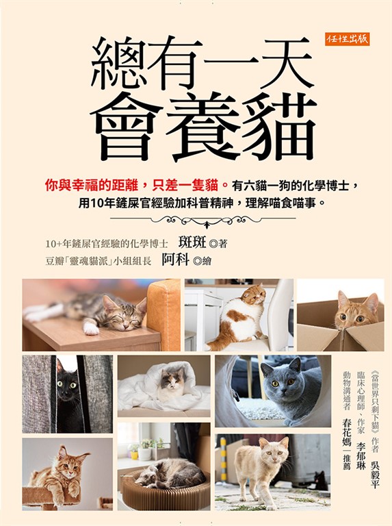 內容簡介 ◎貓有兩張臉,除了一張討你喜歡的可愛臉,還有一張「肛門臉」。◎狗搖尾巴是開心,貓呢?14種獨特的貓尾語言,貓奴一定要讀懂。◎人有指紋,貓則有獨一無二的鼻紋,走失了,可以靠鼻紋找回來。◎貓咪鬍子不能剪、不能剪、不能剪,因為沒有鬍鬚的貓會迷失方向!你是貓派還是狗派?目前全臺貓奴10年增1.88倍, 喵星人更是大崛起,2022年登記數達13.2萬隻,已超過汪星人!跟狗狗相比,貓咪傲嬌、未必給摸還脾氣差,為什麼許多人卻甘願當貓奴? 作者斑斑是擁有十多年鏟屎官經驗的化學博士,家中養了6貓1狗, 基於愛牠就要了解牠,以及理工人凡事秉持好奇與追根究柢的特質, 他開始運用做科學研究的幹勁研究貓。 ◎收服喵星人,先懂這些喵喵事 ‧貓尾巴是傳達貓咪心情的一個重要器官, 當尾巴高高向上翹,表示對你有好感;放鬆下垂,表示「我現在很愜意」; 如果藏起來,表示「我投降」;那左右快速搖著尾巴是……? ‧寵物走失怎麼辦?除了貼公告,還能靠「鼻紋」找回來,準確率高達99%! 還有,貓會暈車、也會有牙周病、屁股不光用來拉屎,還能用來示好。 ◎喵食喵事,這樣吃才健康 ‧土耳其的貓會吃燻香腸和炒蛋、馬來西亞的貓吃麵條和蛋炒飯、 肯亞的貓則習慣吃肉粥、墨西哥和印度的貓甚至敢吃辣。 但有些食物千萬不能碰,如酪梨、洋蔥、生番茄……。 ‧用最省力的方式生存,是貓的天性,只是一旦肥了就超難瘦。 圓滾滾的貓雖呆萌,但容易患心血管疾病、糖尿病…… 目前還沒有治療貓肥胖的安全藥物,所以別再「大橘為重」。 ◎貓薄情,狗忠誠? ‧貓愛搗蛋不是罪,是天性使然! 牠在床上、椅子上尿尿,不是要報復或惹你生氣,而是尋求安全感。 貓還是天生的戲精,即使從櫃子上掉下來,也會假裝沒事默默走開,因為……。 也許你正準備養人生的第一隻貓,也許你已是貓痴,或者, 你只是個沉迷吸貓的雲養貓患者,這本書都能助你一臂之力。 因為,你總有一天會養貓。