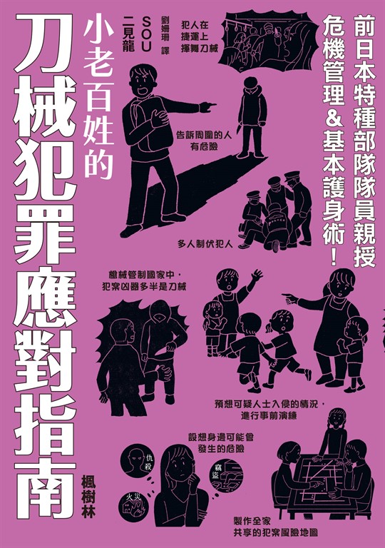 內容簡介 ~《小老百姓的戰場行動守則》好評系列作~前日本特種部隊隊員&自衛隊幹部親授的有效防身術,日常用品也能抵禦危險刀械! 你今天帶著小孩,至百貨公司搶購週年慶商品,突然一聲尖叫傳來⋯⋯ ☠從你身旁跑過的人吶喊著:「是恐怖攻擊事件!」 逃出百貨公司後,你像往常一樣搭乘捷運回家,遠處車廂忽然傳來騷動⋯⋯ ☠神情恍惚的乘客開始隨機殺人,車子行進間卻又無處可逃! 好不容易踏在尋常的回家路上,又警覺到哪裡不對勁⋯⋯ ☠精神不穩的歹徒持刀尾隨在後! 終於回到令人安心的家中後,你卻發現⋯⋯ ☠房間物品明顯遭移動,窗外傳來動靜! 我們每個人都有可能遭遇突如其來的恐怖行動攻擊, 身為未曾受過軍事訓練的普通老百姓,該如何保護自己和身邊重要的人呢? 本書由前日本特種部隊隊員&自衛隊幹部撰寫,親授危機管理及基本護身術。 幫助讀者建立完整風險管理的概念及方法,平時就做好心理準備, 面對「絕非偶然」的犯罪事件,也能做出有效的因應對策! 第1章▶▶如何做好風險管理 刀械是槍砲管制下的台灣最好取得的殺傷物。 本章分析不同的犯罪類型,引導讀者自製「犯罪地圖」,平時就做好萬全準備! 第2章▶▶如何應對突發事件 真的不幸捲入危險中時,腦袋一片空白是最危險的。 本章介紹各種因應辦法,讓讀者瞭解什麼時候要大叫、逃跑、報警、躲藏,甚至搏鬥! 第3章▶▶如何有效進行防衛 平時練就有效防身術和緊急處理傷口的能力,才能製造生還機會。 本章旨在介紹適合一般人的訓練方法,保護自己的同時,也保護重要家人! 本書特色 ◎聚焦【預防辦法】、【案件應對】與【防衛訓練】三層面,系統性因應突發危機! ◎實際演練照片+清晰插圖,迅速掌握自我防衛的基本動作! ◎詳細解說如何事先擬定好危機應對辦法,才能夠臨機應變!