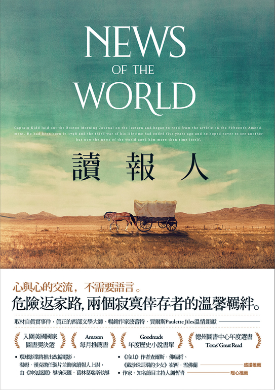 內容簡介 取材自真實事件,真正的西部文學大師、暢銷作家波蕾特.賈爾斯Paulette Jiles溫情鉅獻——▍環球影業將推出改編電影,湯姆‧漢克擔任製片並飾演讀報人上尉,由《神鬼認證》導演保羅‧葛林葛瑞斯執導▍入圍美國國家圖書獎決選|Amazon每月推薦書|goodreads年度歷史小說書單|德州圖書中心年度選書(Texas’ Great Read)▍《冷山》作者查爾斯‧佛瑞哲、《戴珍珠耳環的少女》崔西‧雪佛蘭 盛讚推薦▍作家、知名節目主持人 謝哲青暖心推薦 心與心的交流,不需要語言。危險返家路,兩個寂寞倖存者的溫馨羈絆。在交通不便、識字率低的年代,讀報人在城鎮之間巡迴,講述報紙上的新聞與趣事,給不識字、讀不快,或想要聽一個好故事的人們…… 南北戰爭後數年,經歷過三次戰爭、失去了自己的印刷廠與妻子,年邁的基得上尉在北德州四處漂泊,為付錢聆聽世界新聞的聽眾朗讀報紙。 他意外接下一個任務,護送一個女孩回到她的原生家庭。喬韓娜幼時被凱奧瓦印第安人綁架並收養,她所熟知的一切都來自這群印第安人。基得上尉必須送她前往法律認可的家——她幾乎一無所知的伯父母身邊,而女孩並不情願。 他們要穿越西部的狂野大自然,面對試圖搶走女孩的無法之徒,並跨越語言與文化的隔閡,一起尋找他們歸屬的「家」。 波蕾特‧賈爾斯用精簡詩意的文字描繪出德州的大自然,帶領讀者一起踏上這趟尋家的旅程。其中宛如《真實的勇氣》與《偷書賊》中老少培養出的親情羈絆,跨越文化與語言互相理解的溫情關懷,刺激的槍戰與危機四伏的自然環境,都為這趟歸家之旅添加變數。各界佳評如潮 「這本小說細膩描寫自由的喜悅……兩人相依為命,始料未及地發展出彼此從未體驗過的親情,這是一部狂放不羈的德州荒野歷險記,也是異文化間的握手言和……能把這些全寫進這本強而有力的小書裡,咱們的波蕾特.賈爾斯就是有本事用三言兩語道盡一切。」——《紐約時報》(New Your Times) 「賈爾斯的抒情風格和簡單扼要的標點,讓讀者完全沉浸在塵土飛揚的德州風光中,目擊兩個最不可能相遇的靈魂,在這段旅程中共同經歷痛苦、恐懼、同情、喜悅。」——《書單》星級評論(Booklist) 「令人心碎的絕美故事。一個白髮蒼蒼的老先生,一個迷失方向的小女孩,兩人的互動充分展現人與人之間的關懷,以及於世界的自我定位的意義。」——《戴珍珠耳環的少女》作者,崔西.雪佛蘭(Tracy Chevilier) 「波蕾特.賈爾斯的蠻荒西部……完全重磅出擊。而且,天啊,賈爾斯可真會寫……《讀報人》意外地柔情萬分,卻絕不柔弱。她的文字只有美好二字可以形容。」——《今日美國報》(USA Today) 「如果你是德州歷史小說的愛好者,絕不能錯過這本西部小說。」——《圖書館期刊》(Library Journal) 「震撼的豐富歷程……基得上尉應該與《真實的勇氣》的公雞考伯恩和《孤獨之鴿》的葛斯及柯爾並列西部小說名人堂,當之無愧。」——美國國家圖書獎得主、《冷山》作者,查爾斯.佛雷澤(Charles Frazier) 「美麗絕倫的故事…… 賈爾斯的文字敏銳細膩……她用最精練的語言,表現兩個完美角色的每一種情緒,層層堆砌至故事結局。」——《扉頁》雜誌(BookPage) 「賈爾斯描述一個俘虜從凱奧瓦族手裡被贖回、引人入勝的劇情,寫出一個讓人憶起氣氛緊繃的後內戰時期的德州故事……賈爾斯娓娓道來上尉和喬韓娜的故事、美國的今與昔,流暢卻款款地交代一個熠熠動人的寓言,在在證明她當真是西部文學大師。」——《出版人週刊》(Publisher Weekly) 「去除兩位主角所面臨的險惡環境和恐怖情勢之後,貫穿整部小說的是強烈的人性主題,探討社群、家庭與友情,更帶著能令人會心一笑的幽默感。美國老西部是讀者想像世界的經典,《讀報人》正是這類經典文學的一流作品。」——加拿大《環球郵報》(The Globe and Mail) 「這是一部文字細膩、精彩至極的小說……充滿戰爭煙硝的時代背景中,最醒目的莫過於一段動人的友情,一個無所適從的小女孩,一個衰老無力的男人,這兩人應該列為美國蠻荒西部的最奇妙搭檔。」——《華爾街日報》(Wall Street Journal) 「生活在這個複雜的世界中,很高興能知道誰戴白帽、誰戴黑帽,並聲援一位最初是為了責任,後來則為了愛而做些純粹而美好事情的人。這就是《讀報人》:純淨而美好。」——亞馬遜月選書書評,艾琳.科迪切克(Erin Kodicek)