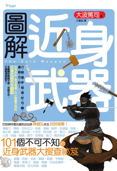 內容簡介 F-Maps手持幻想地圖,踏入知識滿載的奇幻旅程刀、劍、槍、斧、槌、棍、杖、弓、鞭、扇、鉤、爪、針……古今中外、各式各樣、大小輕重不同的近身武器完全圖解101個不可不知的近身武器大搜查祕笈台灣第一本近身武器完全圖解手冊!近身武器,又稱為「冷兵器」,專指除鎗、炮等火力型武器之外的貼身用攻擊器具。透過本書,你可以了解:何謂近身武器。什麼體型的人適合用什麼近身武器?配戴什麼武器的人可能有什麼個性?各式近身武器的特徵和細節。為什麼它會是這種形狀和構造?各種近身武器的攻擊與作戰法。保養武器的技巧。神奇的特殊武器介紹。(警告!進入本章節請做好心理準備)甚至……沒有武器時,你可以如何攻防!日本狂銷十萬冊暢銷書!讀者4.5顆星好評:「豐富多彩的武器介紹,實戰性的使用方法詳解,小小一本卻知識滿載,令人驚喜!」「讀起來輕鬆愉快,插圖細緻、資料詳細,有趣又知識兼具的書!」「原來有這麼多不同的近身武器和用法,實在太好玩了!」