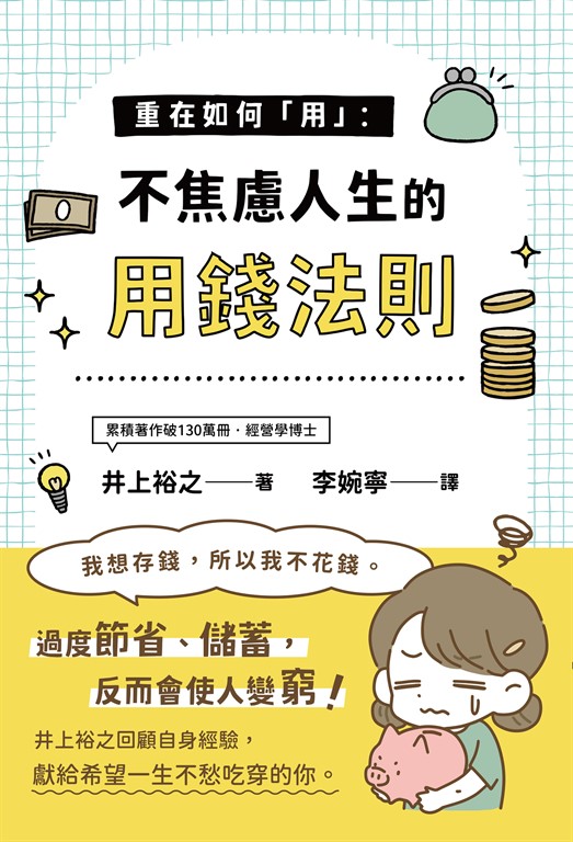 內容簡介 ~「我想存錢,所以我不花錢」是錯誤觀念!?~累積銷量破130萬冊經營學博士告訴你過度節省、儲蓄,反而會使人變窮!「只要有錢,就能幸福了嗎?」針對這個問題,答案是「NO」! 若不了解金錢流動、正確的用錢方式、金錢的本質, 只是突然中樂透,總有一天仍會招致破產的結果。 為此應該要學會正確用錢,勇於花錢! 就讓結合約瑟夫.墨菲博士「潛意識」 與經營學權威彼得.杜拉克「使命」成功哲學的 潛意識大師──井上裕之告訴你 「不再為錢所困」的用錢法則! ◆好的借貸能成為一種力量,並轉換為龐大資產 許多人對借貸帶有負面觀感,認為「借貸就是不好」、 「會借貸的人,用錢的方式太隨便」、「絕對不能借貸」等等。 其實「好債可以盡量借」! 將借貸用於提升自己、培育公司人才上, 不僅能促使人更精進, 只要如期償還,還能節省時間、提升自己在社會上的信用。 ◆根據「這筆花費會創造出多少絕對價值」來判斷是否花錢 「絕對價值」即「對使用者來說的價值」及「個人價值」。 舉例來說,將金錢用在自我成長上,就等同於花錢在「豐富個人檔案」上, 個人檔案不只是一種自我介紹,打造個人檔案就是創造「人生的設計圖」! 當個人檔案的內容變豐富,就表示你離理想中的自己又更近了。 ◆成為配得上的人!提升自我環境,不僅以「便宜」做選擇 人會隨著環境而改變,適應周遭狀況。 成長中、教育程度高、致力於培養新創公司和創業家的環境等,就擁有好的能量。 當我們身處充滿好能量的地方,就會與之產生共鳴, 最終自己也會開始散發好的能量! 「比起增加金錢,我更重視如何使用、流動金錢。 金錢不是用來增加的,而是用來『使用、流動』的。」 「只要開啟『正確用錢』的循環, 即便沒有意外橫財,也不會為錢所困。」 ──井上裕之 不要想著靠運氣、求財神保佑, 最應該依靠的對象應該是「自己」, 無論是什麼願望,都只有你能實現! 「相信自己的力量,並採取行動」,就是提升金錢運最好的方法! 本書特色 ◎重整金錢的本質與使用,刷新「貨幣」、「財富」觀念,減輕金錢焦慮作祟! ◎「循環PDCA」提升自我價值,釐清正確「用錢」方式達到財富自由! ◎分析「成功者的5個共通點」,「寄生上流」式有錢人理財思維大解析!