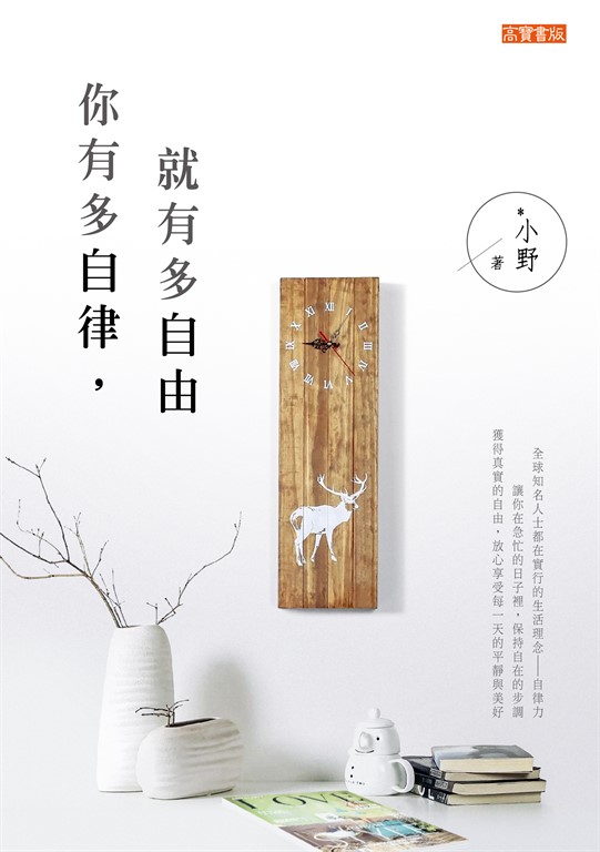 作者介紹 *小野中國新世代旅日作家,設計師。她親身體驗由散漫混亂的生活到及其自律、自我管理能力很強的生活方式。她堅信,人有多自律,就有多自由,因此提倡以積極而主動的態度,去面對和解決人生中的種種痛苦和執念。沒有想到,只要透過自律,讓習慣和生活方式開始有所不同,就能真正擁有自由的生命,也能腳踏實地撿拾和享受生活裡的種種美好。作者身為資深自律達人,將帶你一步一步培養自律力,並用它來打造一個輕盈的人生。這不僅僅帶你體會到真正的自由,更能讓緊繃的心靈放鬆,自在地開始過你想過的日子。在中國已出版另一本作品《極簡力》,書寫風格頗受年輕一代好評。