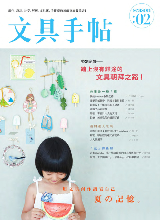 在盛夏季節出刊的《文具手帖Season 02》,就要以這個熱鬧的季節作為文具創作藍本,看設計創意無限的手作人如何以各類文具媒材,將曾在腦海駐足關於繽紛夏天的各種美