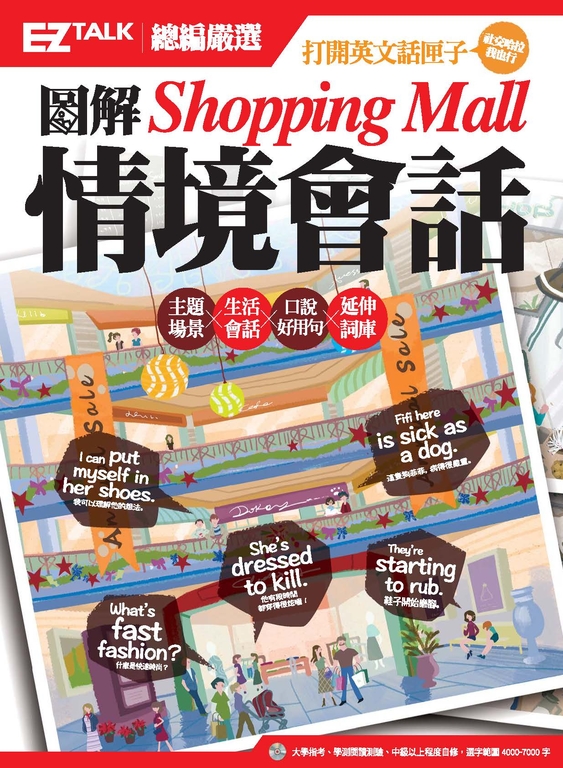| 簡介 / | 圖解Shopping Mall情境會話: EZ TALK總編嚴選特刊 (電子書):慢工出細活!EZTALK總編嚴選首本圖解情境會話書不只亮眼吸睛,更要你學習點石成金精緻的立體場景圖,單字聯想 |
