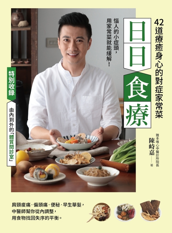 內容簡介 ※暢銷健康書《日日湯療》陳峙嘉中醫師,最新力作!※惱人的小症頭,家常菜就能緩解解決肩頸痠痛、偏頭痛、便祕、尿床、早生華髮……由內到外的體質問診室x 42道對症家常菜中醫師幫你從內調整,用食物找回失序的平衡》早上醒不來上班沒精神,在「咖啡」裡加點「人參」,助你甦醒有元氣》肩頸如化石,「葛根」+「鮭魚」能舒緩痠痛、趕走壓力》一變天就鼻塞,「桂枝」+「生薑」能幫助發熱,吹到冷風不再打噴嚏》頭痛想撞牆,今晚的「咖哩雞」裡加點「川芎」一起煮》小兒尿床,可吃麻油桂圓「炒蛋」》想要燃脂瘦小腹,可吃加了赤小豆x白腎豆的「溫沙拉」——小小加料的家常菜,就是緩解身體不適的好夥伴!◆給身體最需要的食物,一個人到全家人的的對症家常菜延續第一本《日日湯療》的精神,暖男中醫師陳峙嘉,帶讀者重新認識自己的「體質」,書中深入淺出說明一般人常聽到氣虛、血虛、肝主血、脾虛夾濕等,這些到底是什麼意思?以及該如何自我判斷體質?身體不舒服,其實就是體質失去平衡了。本書針對一般人常見的症狀,運用食物的偏性,結合食材與中藥材,設計了42道家常食療料理。當身體有點不舒服的時候,利用輕鬆能取得的食材做一道適當的料理來吃,就能讓身體回復到理想的狀態。這42種小症頭包含幾個類型:【疲勞回復料理】早上醒來、3C眼、肩頸僵硬、情緒憂鬱……【體質改善料理】緩解一些因體質引發的常見毛病包含:便祕、中暑、頭痛……【分齡保健料理】各年齡可能最常見的問題,小兒尿床、長不高,長輩膝蓋退化、睡眠不好……【青春健美料理】瘦身、美白、消水腫、讓白髮變黑髮……【一帖見效料理】特殊情況也都有解,如:戒菸、熬夜後、宿醉……【※特別加碼】運動效果增強、吃不胖的宵夜……◆ 別讓「養生」變「傷身」,最想知道的健康迷思大解答!陳醫師在看診時常說:「中藥也是藥,藥就是毒」,如果長期、大量吃某些特定食物,一旦與自己的體質不合,不但無效,還可能對身體造成傷害。因此本書特別整理了陳醫師常被詢問的迷思,希望能解開大家的疑惑,矯正飲食觀念,而不再只是一味盲從,傷害了身體而不自知。關於這些健康的迷思與疑惑,你都知道嗎?◎孩子年紀還小,可以喝中藥嗎?◎感冒吃中藥,好得慢?◎人參會造成身體燥熱,不宜多吃?◎喉嚨好乾,吃喉糖有效嗎?◎刮痧治百病,刮出紅痕或瘀青最好?◆本書特色1、【最全面】──全面剖析虛證、邪氣、體質與健康的前因後果,從內在調理,擁有不易病體質。2、【最貼心】──針對每個體質詳細列出養生建議、常見症狀等,從零開始好好認識自己的體質。3、【最簡單】──食療帖簡單易做,從隨身茶飲到每日家常菜,善用食材與藥材就能緩解,不僅能滿足味蕾,也能好好調理身體。