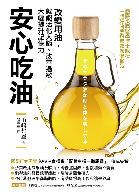 內容簡介 大腦60%是脂肪,把吃油變吃補!一瓶好油勝過無數保健食品腦科權威教你「最簡單的健腦飲食」改變用油,2週就能見效提高記憶力、增強免疫力、遠離各式疾病【好油,可以預防90%疾病】‧炒菜改用米糠油(玄米油)及麻油,降低膽固醇、重複加熱不變質‧橄欖油能紓緩感冒症狀,增強身體免疫力‧多吃紫蘇油平衡脂肪酸,有助於提高工作和讀書效率‧每天吃亞麻仁油,2個月改善鼻子過敏、異位性皮膚炎 原來,油會直接影響「大腦」健康。攝取好油,就能預防九成疾病。作者身為腦醫學博士和阿茲海默症權威,用專業知識分析食用油對大腦和身體的影響,並且詳細解說各種油品成分,為你提示該怎麼吃、怎麼選,從每日飲食中找回健康。◆「食用油」直接影響腦神經,好油養出好腦力 人體全身細胞都由脂肪形成保護膜,掌控養分進出、抵抗有害物質,最重要的大腦也有60%的成分是脂肪。所以我們攝取的油分(脂肪酸)對維持健康極為重要,尤其對大腦更是有兩個關鍵性作用:一、神經訊息傳遞【思考和反應速度】:脂肪除了能傳達電流信號,也能成為絕緣體。適量且優質的脂肪可讓大腦動力全開,但若是劣質脂肪,就會阻礙思考,使大腦只能發揮一半實力。二、腦神經細胞再生【記憶力】:大腦神經細胞不同於其他細胞,絕大多數一輩子不會更換,唯有「記憶中樞─海馬廻」是唯一例外,能持續產出新的神經細胞,但這個特殊的再生系統要有「油」才能啟動。◆換好油,抗百病!增加全身六十兆細胞的疾病自癒力 攝取好油不但能促進大腦活化,還能強化全身的細胞機能。所以只要更換食用油,很快就能體會到身體各部位變得更健康、免疫力也提高了。攝取特定的健康植物油,還能減輕不適症狀,例如橄欖油能抑制炎症紓緩感冒,米糠油(玄米油)可降低膽固醇。【改變用油,2週就能看見驚人成效】(1)不再忘東忘西,大腦思考和判斷速度變快(2)皮膚搔癢、乾癬、鼻子過敏等症狀減輕(3)提升專注力,工作和學習效率加倍(4)改善失眠、提振精神,擺脫慢性疲勞(5)穩定身心情緒,減少衝動易怒及憂鬱傾向◆打破迷思!植物油≠健康,醫生嚴正警告:「不要再吃沙拉油」 現在台灣家庭和外食產業最多人使用的沙拉油,其實就是「精製植物油」,其中80%為油菜籽油或大豆油,也會調和玉米油、橄欖油、米糠油、棉籽油等,但這些植物油並非如我們所想、對身體更健康。〈迷思1〉植物油比動物油健康(錯!)→多數植物油加熱都會產生毒素〈迷思2〉植物油可以長期保存(錯!)→像生鮮蔬果一樣容易腐壞〈迷思3〉橄欖油就是健康油(錯!)→「純橄欖油」沒有健康價值【你不該再吃沙拉油的三大理由】(1)精製沙拉油從生產到烹調會產生大量神經毒素(2)沙拉油中殘留有毒的化學藥劑「己烷」(3)沙拉油在體內代謝後,會產生發炎、過敏的物質◆不必多花錢,天天吃「最有效的保健食品」立刻改變用油,正確的選購&烹調指南 並非所有含亞麻油酸的植物油都不安全,植物油因原料不同,有特殊的營養成分能防止毒物生成,因此必須進一步認識它們的特性與使用方法:【依烹調溫度選擇】不含天然的抗氧化物質,加熱就容易產生毒素例:米糠油(玄米油)、麻油抗氧成分多適合高溫烹調,其他植物油則適合用於涼拌調味【用製油方式判斷】冷溫壓榨、高溫壓榨等物理萃取,或是化學萃取,要小心化學添加物或變質劣化例:大豆油經高溫壓榨、化學萃取,產生多重毒素並混入雜質【原料&產地分析】原料是否為基改作物、進口產地使用農藥與否等例:油菜籽油植物毒素高,芥花籽油植物毒素較低,但有基因改造疑慮【從成分標籤分析】學會閱讀標籤成分表,不被油品名稱混淆例:認識油酸、亞麻油酸,檢查橄欖油的製程、酸度、生產日期、產地等 現在就吃好油,未來不必吃藥。脂肪遍布大腦神經和全身細胞,只要改變你吃的油,便能改善全身健康。快跟著山嶋博士從醫學角度審視,來選一瓶促進健康的好油吧!※※ 本書特色 ※※【最專業】由醫學博士執筆,分析油品健康功能,國際學者的專業值得信賴。【最全面】凡是生活中會接觸到的油品、加工油品都細心說明,好油、壞油皆有研究佐證。【最嚴謹】油品從原料種植、運送、儲存、精製到使用方法,針對各種因素解說,嚴格為健康把關。【最實用】在內文和知識專欄中,列舉各項食品成分及注意事項,例如噴式奶油其實是沙拉油製品、添加酥油和反式脂肪的食物列表等。