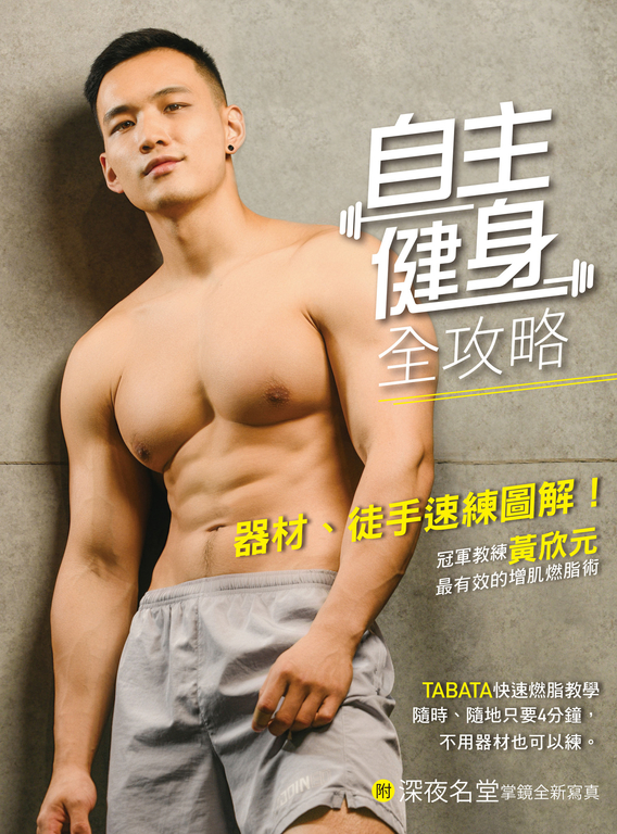 作者介紹 黃欣元InShape專業健身店長,曾任三百壯士健身俱樂部私人教練、新北市政府體適能中心教練,獲2018年香港環球盃經典賽銀牌、台南府城盃健美賽金牌、台北青年盃健美賽冠軍、2019年全國健身健美錦標賽男子古典健美180冠軍。曾為「深夜名堂」、「晏人物」、「曾崇倫 Teddy Tzeng」等攝影師擔任模特兒。「生活大小事」、「太太狠犀利」、年代新聞、東森新聞、viva電視台以私人教練身份擔任嘉賓。www.facebook.com alvinhuang0101