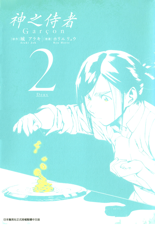 作者介紹 原作:城 アラキ漫畫原作者。代表作:《美酒貴公子》、《大空港》、《王牌酒保系列》。漫畫:ホリエ リュウ漫畫家,於日本集英社《グランドジャンプ》雜誌上連載本作品《神之侍者》出道。"
