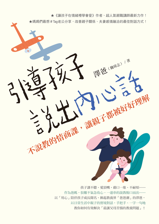 內容簡介 ★《讓孩子在情緒裡學會愛》作者、超人氣親職講師最新力作!★媽媽們最想#Tag老公分享,改善親子關係、夫妻感情融洽的最佳對話方式孩子講不聽、愛頂嘴、藉口一堆、不耐煩……作為爸媽,很難不氣急攻心,一連串的說教脫口而出……以「用心」陪伴孩子成長聞名、掀起教養界「爸爸潮」的澤爸,以日常生活中親子的實境對話,手把手、一字一句地教你如何有效解決「最讓父母苦惱的教養問題」!面對最愛的家人,我們更應該要好好說話!當你好好說話,孩子才會展露真心,開啟改變的契機!你在外面交遊廣闊、很能聊,但是回到家面對孩子,只會說教、罵人嗎?你很遺憾自己跟父母,除了噓寒問暖就沒話聊了,並且渴望跟自己的孩子能像朋友一樣促膝長談嗎?關係是從日常的相處中一點一點累積出來的,其中少不了要以「對話」和「陪伴」來強化心的連結,當彼此的關係變得親密,就能因為受到信任而發揮出影響力。親子之間的關係也是如此。在本書中,澤爸先傳授父母如何穩定自我情緒,然後引導孩子學會辨識和抒發情緒,並以對等的姿態和好奇的提問,探索孩子的內心世界。這樣透過有效的對話,點燃孩子願意做、願意改變的決心,就能克服天下父母最傷腦筋的教養問題。