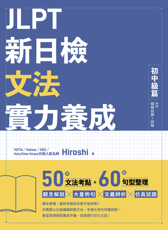 商品描述 | JLPT新日檢文法實力養成:初中級篇 (內附模擬試題+詳解) (電子書):課本都懂,看到考題卻反應不過來嗎?你需要以日檢邏輯統整文法,多樣化例句培養語感!日檢初中級50個 |