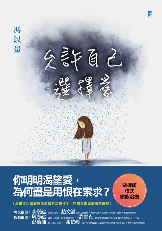 內容簡介 你明明渴望愛,為何盡是用恨在索求?.薩提爾模式家族治療。.馬來西亞家庭關懷及家族治療推手,完整重現家庭雕塑歷程。「以前我多麼想要快點離開這裡,現在它竟然屹立在這兒,等我回來療傷。原來我的家,也有充滿溫情的一面。為何當初我只看到恨與傷害?」──馮以量[把傷害還給過去,力量還給自己。]十歲時,父親遺下巨債,離家出走;十三歲時,父親回家了,不久卻癌末過世;十八歲時,母親也罹癌走了……年輕的以量連遭重創,三度自殺未遂。但隨著由求助者成為陪伴許多脆弱心靈成長的助人者,亦幫助他明白了:心裡那個無底的黑洞一直都會在,那是自己的一部分──然而,我們能為黑洞點亮光。在本書裡,他如實還原與協助對象的對話、互動歷程,引領我們不僅閱讀著這些真實蛻變,更深入諦聽自我內心。.男人說:「我從小就告訴自己,長大後不要像爸爸那樣不負責任。可是,我現在卻把自己的家弄得一敗塗地!」(其實,我們往往在複製與自己原生家庭之間的關係模式。).母親說:「請你修理我的孩子!」(但孩子只是一面鏡子,反映了家庭互動的病態,並不是病態的本身。)[愛自己,為何要允許?]因為允許自己不再扮演受害者,寬容自己值得擁有愛,才能真正為自己負責,脫出桎梏,創造新生。生命裡的許多「為什麼」是沒有答案的,我們只能讓自己變得更好,把傷害還給過去,力量還給自己。不是明天。就是現在。本書特色:◎你可曾想過:在你的生命裡,你的父母曾傳承了什麼給你?而你又打算傳承什麼給你的孩子?◎過去沒學會的課題如今重現,就是要讓我們做出一個更好的選擇,以擺脫舊有思維帶來的痛苦。你可以選擇給你自己愛,為自己創造愛。◎最揉入讀者心裡的是:馮以量不寫理論分析,而是如實還原與協助對象的「對話、互動」歷程。名人推薦:資深心理工作者重磅專文推薦(詳見本書內頁推薦序):◎「我沒見過馮以量,但我毛遂自薦為他的書宣傳。以量的坦誠與開放,讓我揭開書頁即震撼。」──李崇建(心理導師)◎「作者並不以專家自居,小心翼翼接住一顆顆受傷的心靈,溫柔引導他們找回陽光。我看到一顆溫柔的心。」──趙文滔(國立臺北教育大學心理與諮商學系教授、伴侶與家庭治療師)感動推薦:周志建(資深心理師、故事療癒作家)、許慧貞(臺北國際書展大獎入圍《最後抱他的人》作者)、彭菊仙(知名親子作家)、謝依婷(成大醫院精神部兒童青少年精神科主治醫師)(依姓名筆劃順序排列)