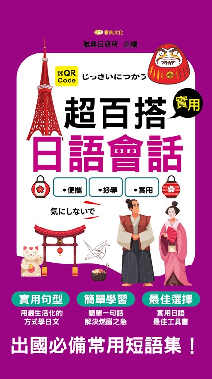 商品描述 | 超百搭實用日語會話 (QR) (電子書):搭配QRCode設計讓您想翻到哪裡.掃到哪裡.聽到哪裡.都非常方便閱讀.三好:好攜帶、好好學、好實用, 是您選擇學好日語最佳工具書。: |