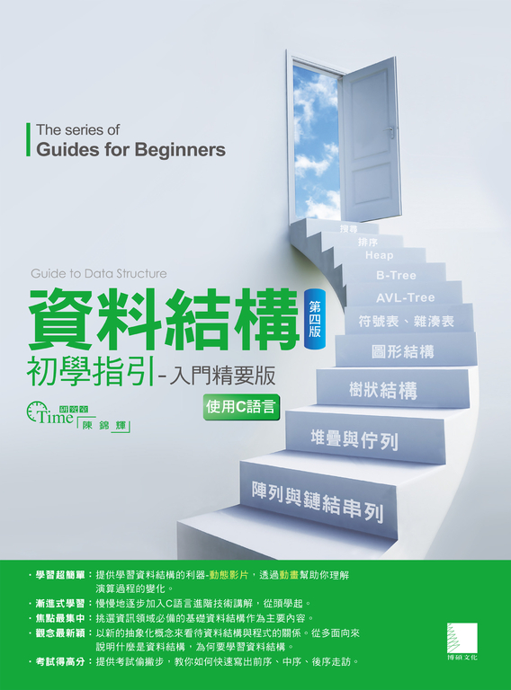 簡介 / | 資料結構初學指引──入門精要版(第四版) (電子書):■考試得高分:提供考試偷撇步,教你如何快速寫出前序、中序、後序走訪。考試不必陷入遞迴的追蹤。■學習超簡單:提供 |