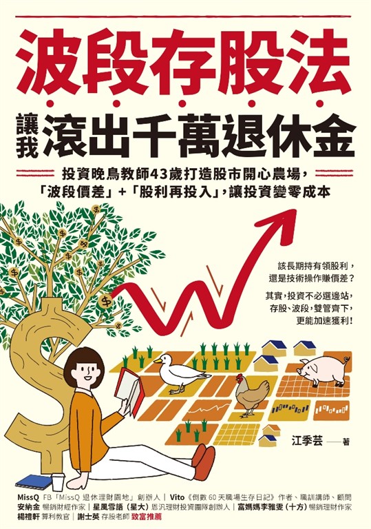 內容簡介 該長期持有領股利,還是技術操作賺價差?其實,投資不必選邊站,存股、波段,雙管齊下,更能加速獲利!★《鏡週刊》、風傳媒、雲端最有錢、MomoTv等多家媒體專訪★ 波段存股法打造股市開心農場,5年300萬變1,300萬★ 2大選股方向 ╳ 4大買股準則 ╳ 3成波段價差策略,加速獲利◎ 為轉換跑道做準備,超前部署退休金,目標設定股利年領100萬2015年,43歲的銘傳大學企管系助理教授江季芸,開始正視高齡化和少子化對社會各層面所造成的影響,以及對教育界未來無可避免的衝擊。她的危機意識引發預做準備的念頭,於是擬定了一個「離開校園10年計畫」,決定超前部署退休金,目標是「10年後離開校園,每年領到100萬元的股利,當作退休金」。◎ 股市,是一座打造被動收入的開心農場近年來,存股蔚為風潮,江老師也期待自己能「存」到一籃子的股票,為了執行打造被動收入的計畫,她把股市當作是一座「開心農場」。投入股市的第一年,她買進穩定配息、配股的金融股,也是存股族的最愛。隔年,185張股票變200張,讓她覺得如果持續複利成長,就能順利實現目標。但沒 想到,第三年股利政策改成配息、不配股,股利縮水,股價波動也讓資產起伏,原本的計畫趕不上變化,為了確保她的10年退休計畫能成功,她稍稍調整了作法,讓她 提高了目標達成率!◎ 波段存股法,5年300萬變1,300萬身為股市開心農場的主人,她了解農作物與養殖業具有生產週期,一旦發生供需失衡的狀況,連帶就會引發市場價格的波動,因此,她把投資方法調整成「波段存股法」,也就是「雙管齊下」的策略:「波段價差」+「股利再投入」,5年的投資成效,300萬元變成1,300萬元,提早滾出千萬退休金,2020年,股利年領60萬元,朝向股利年領100萬元的目標邁進——.2大選股方向:生活、產業發產.利用報章雜誌、新聞媒體、免費股市APP挑出好公司.好公司的股價,每隔2~3年一個循環週期.以週線和月線為基礎、KD值為輔,設定買賣時機點.股價漲3成,賺取波段價差,留下零成本股票.賺取價差的獲利,買進其他好公司的股票.善用Excel,成為你的財務管家本書還有更多如何評估企業體質、設定買賣價格、累積零成本股票、記帳等詳細步驟,也會分享如何讓子女成為小小農夫,從生活中落實親子理財教育,最後,說明參不參加除權的優劣,以及常被大家忽略的交易成本,幫你打造一座專屬自己的股市開心農場,給自己10年的時間實現財務自由的目標。