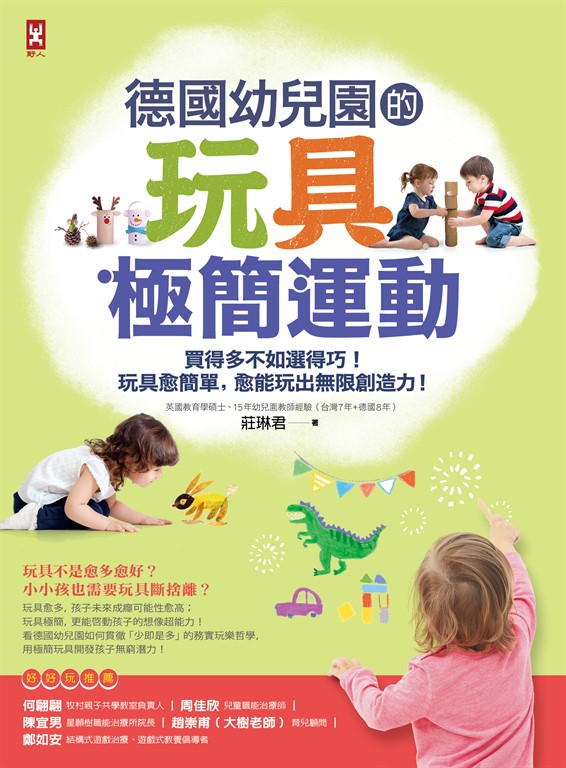 內容簡介 ✓玩具不收!遊戲間總是亂得像戰場?✓孩子不滿足!想要的玩具永遠少一樣?✓不懂玩!沒大人陪,孩子不會自己玩? 德國幼兒園教學長教你: 買得多不如選得巧! 玩具愈簡單,愈能玩出無限創造力! 玩具愈多,孩子未來成癮的可能性愈高;玩具極簡,才能啟動孩子的想像超能力!現任德國幼兒園教學長,執教超過15年的經驗大公開,從具體的玩具選購、玩法,甚至分享德國最盛行的「無玩具運動」經驗,一一解惑父母最頭痛的問題: 【煩惱1】玩具款式日新月異,到底哪種比較好? 作者針對0~6歲幼兒發展需求撰寫的「精選玩具選購指南」, 讓家長精準購買不失手 ,用好玩具刺激嬰幼兒感官發展、 促進1~3歲的手眼協調能力、發展4~6歲的社交技能! 【煩惱2】孩子看到玩具非買不可,每種玩具都「想要」! 過量玩具會讓孩子過度依賴物質、將自我價值建立在外在標準,甚至有成癮可能! 了解德國家長與幼兒園的「惜物」精神與做法,用少量玩具創造豐富童年。 【煩惱3】不專心!一件玩具在手,孩子卻無法專注玩上10分鐘 這代表孩子的專注力已經嚴重超載! 建議爸媽先給予孩子簡單的任務目標,用成就感逐步延長孩子的遊戲續航力。 以上煩惱都是「玩具過量」的警訊,若出現任何相同情況, 請立即跟著幼教專家建立孩子的「玩具極簡計畫」! Q1.「玩具極簡運動」的目標是什麼?為何在德國掀起熱潮? →德國幼兒園的教育理念便是培養獨立、自信的孩子, 玩具極簡能訓練孩子與挫折感、無聊感正面對決, 不借外力來排解情緒、解決問題,做自己情緒的小主人! Q2. 如果幼兒園少了玩具,孩子會不會哭喊著「不想上學」? →並不會!根據德國幼兒園的實務經驗, 在「無玩具月」實施期間會放寬更多常規限制, 例如讓孩子能自由移動桌椅來改變遊戲空間、執行大型遊戲計畫, 所以玩樂的開心指數不減,孩子們每天都開心期待上學! Q3. 「玩具極簡」到底要多徹底?連玩偶、畫筆都要禁止嗎? 玩具極簡並不是要強迫孩子跟心愛的玩具分離, 而是提供一個環境,讓孩子找到更多遊戲的可能。 建議大人們先跟大孩子討論「玩具的休息名單」, 用「共識」取代玩具消失的「被剝奪感」。 本書特色 {1} 「0~6歲玩具選購指南」協助爸媽挑選耐玩、好玩,且有益孩子身心發展的好玩具! {2} 結合理論與實證研究剖析「玩具過多」的教養壞處,以及提出如何引導孩子進入「深層遊戲」狀態的方法,找回孩子專注力、激發創造力。 {3} 公開德國幼兒園「無玩具運動」的第一手觀察紀錄!從德國幼兒的實際反應,證明「玩具極簡」的可能性與必要性。