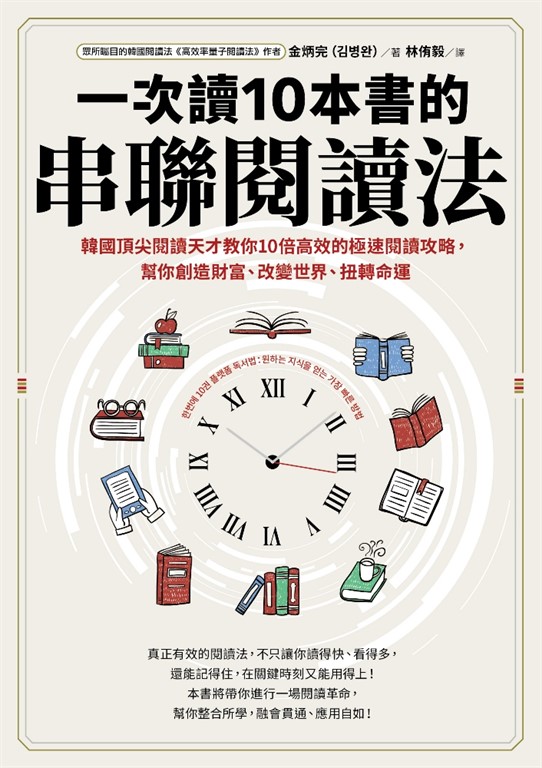 內容簡介 ★★★成效最驚人的終極閱讀法★★★真正有效的閱讀法,不只讓你讀得快、看得多,還能記得住,在關鍵時刻又能用得上!翻開本書,韓國頂尖閱讀天才、改變100,000讀者的第一名暢銷作家將帶你進行一場閱讀革命,幫你整合所學,融會貫通、應用自如!★ 韓國最大網路書店YES24讀者好評9.5顆星,蟬聯4週自我成長類百大暢銷榜★ 3年讀完10,000本書、10年出版100本書、8年培育500位作家、逾5,000人受益的閱讀法★ 打破傳統閱讀框架,1小時讀完1本書、1次讀10本書,讓自我價值指數型成長★ 聯覺閱讀法×抄寫閱讀法×量子閱讀法×超空間閱讀法×平台閱讀法,集結各種獨門閱讀技巧關於閱讀,你是否想過以下問題──.為什麼讀再多書,知識卻無法信手拈來?.明明讀的是同一本書,為什麼有人可以成為專家,有人卻沒有任何成長?.為什麼有人即使閱讀,人生仍然一成不變,有人卻能脫胎換骨?.雖然喜歡看書,但工作忙碌,總是沒時間閱讀.知道閱讀很重要,買了很多書,卻幾乎沒翻開過◎ 成功人士的閱讀法有什麼不一樣?韓國第一名暢銷作家、頂尖閱讀天才金炳完經常思考這些問題,他曾在三星電子擔任研究員超過十年,雖然擁有優渥薪水,但日復一日的工作使他產生迷惘,開始萌生改變的念頭。他發現,許多聞名世界的成功人士都有豐富的閱讀經驗,也開始思考:「比爾.蓋茲是怎麼讀完一整座圖書館的書?」「馬斯克是怎麼讀完10,000本書的?」「巴菲特是怎麼在16歲幾乎讀遍所有投資相關的書?」「賈伯斯如何做到觸類旁通的閱讀?」「富蘭克林、達文西、愛迪生等人,是如何透過書本成為跨領域專家?」◎ 讓你讀得多、看得快、記得住、用得上的「串聯閱讀法」金炳完心想,既然閱讀可以改變人生和世界,自己為什麼不能,為了找到答案,他立刻放棄高薪,開始分析成功人士的閱讀習慣和研究各種閱讀技巧。他觀察到,成功人士的閱讀都不是採用傳統的逐字閱讀或盲目追求速讀,尤其在資訊爆炸的AI時代,必須先思考為何而讀,否則不會有任何改變或成長。他整合多年的獨門閱讀技巧,創造出「串聯閱讀法」或稱為「平台閱讀法」,讓他3年讀完1萬本書,每年出版超過10本書,持續十年,年年寫出暢銷書,領域橫跨人文、經營、自我成長,堪稱韓國第一的暢銷作家,甚至成立韓國第一的寫作閱讀學校,培育超過500位作家和5,000位學員——.顛覆傳統一本接著一本閱讀的漸進式、個別式、單一式閱讀技巧.以主題為核心,同時閱讀多本書,相互串聯,建立知識平台.一次讀10本書,讓閱讀能力與閱讀量提升10倍.跳脫「閱讀思考提問討論」,改用「閱讀串聯整合建構」的閱讀模式本書提供「串聯閱讀法」的七大階段練習和選書方法,還有更多高效率的基礎讀書法,包括:量子閱讀、抄書、編輯工學閱讀、主題閱讀……幫你快速內化知識,融會貫通、學以致用,為自己的工作和人生加分,進而創造財富、改變世界、扭轉命運!