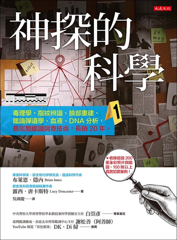 產品目錄 推薦序一 見識,鑑識/白崇彥推薦序二 物證不會講話,但也不會說謊/謝松善(阿善師)推薦序三 略知鑑識,看待案件便有嶄新的視野/DK、Di掃引 言 鑑識科學,找出重大案件的微物鐵證第1章 蒐集證據,每次接觸都會留下痕跡第2章 如何判別自殺,和偽裝自殺的他殺?第3章 辨識「傷口」,瘀傷就能知道死前還死後受傷第4章 一切物質都可以是致命毒藥第5章 骨架推論身形,顱骨重建樣貌第6章 勒殺或溺水,都會造成窒息第7章 依蛆蟲生長狀態,估算死亡時間第8章 各式紋路,夠特別就能揪出犯人第9章 血型推測目標,血跡還原現場第10章 DNA分析,準確指出你是誰第11章 毛髮與纖維也能匹配出嫌犯第12章 子彈從哪把槍來?又會怎麼行進?第13章 火災帶來爆炸,爆炸引起火災第14章 微物跡證,細微卻影響重大第15章 聲音再像,聲紋也不會一樣第16章 除了認臉,也能推測出真凶的心理剖繪第17章 鑑識的科學與設備致謝圖片來源