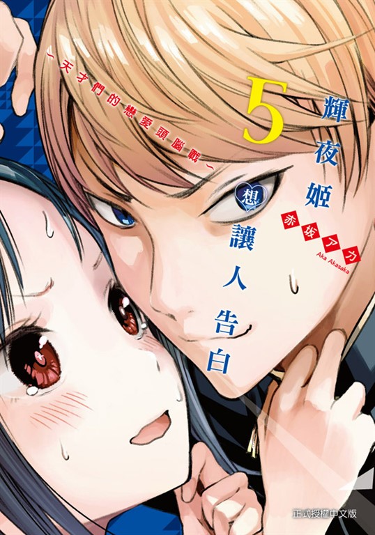 最佳賣點 : 喜歡上對方的人「先告白的人在戀愛當中是輸家!」學生會會長.白銀御行與副會長.四宮輝夜在精英雲集的秀知院學園相遇…。雖然這2個天才兩情相悅,彼此卻一直設法要讓對方愛上自己、主動向自己告白,為達此目的,他們將在日常生活中使出渾身解數鉤心鬥角,演出全新感覺的愛情喜劇!!第5集的內容是,往常的戀愛鬥智外加…