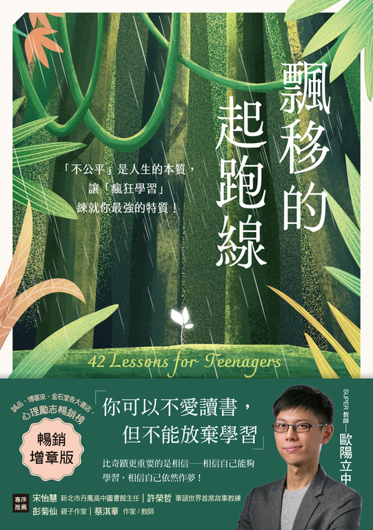 內容簡介 誠品、博客來、金石堂各大書店心理勵志暢銷榜熱推好評不斷|新版再出發,增加了六篇新章!|「你可以不愛讀書,但不能放棄學習!」比奇蹟更重要的是相信──相信自己能夠學習,相信自己依然作夢!本書是歐陽立中老師在人生路、教學現場,按下快門所留下的一道道風景。它不盡然風光旖旎,但處處動人;它不盡然春意盎然,但句句逢生。「有些人,三十歲就死了;八十歲才下葬。」人生最大的悲哀,莫過於此。真正的死亡,並不是我們停止呼吸的那一刻,而是我們不再做夢的那一瞬。身為老師,我們最大的矛盾,就在於:一方面渴望找到孩子們的天賦,二方面希望成績能撐起他的夢想。 有些孩子,不知道遠方在哪,未來對他們而言,是一片虛無:趕快畢業、找個大學唸、找份勉強的工作、過著不太滿意的人生,卻也無力突圍。起跑:青春的迷惘人生最怕的不是失敗,而是我本可以! 續航:找出自我的天賦進到我的教室,就是改變的開始。 學習:現在放棄就輸了不是坐在教室就叫做學習,而是…… 衝刺:保有迎向未來的初心你知道很多道理,更該過好這一生。──專序推薦──歐陽不只教學生讀書,也教學生做人處事:他教會學生看淡成功,那是保持良善的心的秘訣;他教會學生面對失敗,那是成長躍進的朋友。──宋怡慧.新北市丹鳳高中圖書館主任歐陽立中一邊鍛鍊,一邊把鍛鍊的方法和歷程寫了下來,於是有了這本教育散文。在我看來,歐陽的熱血難以複製,但他的方法非常值得借鏡,因為他已經倒立走了木葉忍者村一萬多圈了。──許榮哲.華語世界首席故事教練歐陽老師能把「硬道理」埋設在完美的「文字機關」裡,以至於,那些我們迫不及待想塞給孩子的,關於生存、競爭、勇氣、追夢的遙遠神話,都變成了一則則妙不可言、感同身受的創意故事!──彭菊仙.親子作家立中老師更是個超級說書人,整本書由一則則精彩絕倫的故事堆疊而起,聽立中老師說故事,常常讀著讀著就笑了,笑著笑著就哭了,哭著哭著就懂了。──蔡淇華.作家 教師──具名推薦──王政忠—夢N總召集人|李洛克—故事革命創辦人|李崇建—台灣青少年教育協進會前理事長|李儀婷一親子教養作家|李繼宗—台北市私立靜心國民中小學主任秘書|余懷瑾—2016TEDxTaipei講者|易理玉—2015年師鐸獎得主|林達陽—詩人 作家|范曉雯—台北市立成功高中教師|許玉華—台北市立成功高中數學教師|莊越翔—乘風少年學園專任老師|陳志恆—諮商心理師 作家|溫美玉—南大附小教師 全台最大教學社群創辦人|曾培祐—注意力設計師|曾明騰—SUPER教師 龍津高中理化老師|曾慧媚—丹鳳高中校長|詹嘉芸—新北市中和高中國文教師|趙胤丞—心智圖企業內訓講師|蔡明淳—明淳說創辦人|瞿秀蘭—成功高中退休國文老師