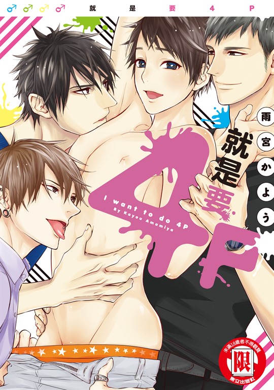 內容簡介 (全一冊)啓太郎因為被前男友以無法應付他的性欲為理由強制分手,讓他開始擔心自己的欲求不滿。在自暴自棄的情況下,啓太郎答應參加同性戀影片的演出,也因此遇見了力斗、央與大尚這三位不同類型的帥哥。與這3個人合作拍攝了一部4P主題的影片之後,啓太郎發現自己享受了前所未有的性愛,讓他決定從今以後如果不是4P的性愛就不行!