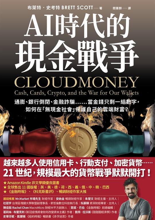 內容簡介 當人們逐漸不再使用現金交易,改用信用卡、電子支付、加密貨幣……金錢只剩雲端數字,通膨、銀行倒閉、金融詐騙……隨之而來,21世紀,一場無煙硝且規模最大的貨幣戰爭,已經全面默默開打!你我該如何保護自己的財富?★ Amazon Kindle非文學類優良圖書★ 全球熱銷11國:英、美、德、荷、西、義、俄、中、韓、巴西★ 《金融時報》、《科克斯書評》、暢銷財經作家大推「實體貨幣」漸漸變成「雲端貨幣」,會對你我帶來哪些影響?了解利與弊,更能掌控財富的自主權!◎ 「無現金宣言」對現金開戰2011年,現金開始被塑造成「容易損毀、不安全、不衛生」的負面形象,由一群銀行、支付公司、政府機構相爭響應,全球規模最大的金融技術大會Money 20 20甚至還提出《無現金宣言》,21世紀無煙硝、反現金且規模最大的貨幣戰爭默默開打。◎ 無現金社會,帶來便利,也造成財富隱憂全球知名經濟人類學家布萊特.史考特觀察到,金融科技(FinTech)日益進步,不必帶現金出門,只要有張信用卡,甚至一支手機,就能購物,無論是刷卡或無接觸支付的「無現金社會」,對商家和消費者都是一大便利,有人說現金是經濟發展和自動化的一大阻礙,但相對也帶來不少隱憂──.銀行無預警倒閉,存戶卻無錢可領、求助無門.數位貨幣帳戶被駭客入侵或被詐騙,財富一夕歸零.你存在銀行裡的錢,淪為國家和銀行的籌碼.網路金融犯罪正在蓬勃發展◎ 拯救現金,同時保護自己的錢包史考特發現,雖然無現金社會是勢在必行的趨勢,但我們還是有方法可以保護自己的財富──.不再把貨幣視為經濟的血液,而是神經系統.了解金融體系的運作模式.認識支持無現金社會的四大陰謀家.強烈主張自己的現金使用權本書還有更多探討雲端貨幣、金融體系、區塊鏈、加密貨幣、無現金社會的問題,讓你更有意識使用現金、信用卡、電子支付和加密貨幣,這樣才能有效且務實地保護自己的財富!本書你將學到:.什麼是雲端貨幣、加密貨幣、國家貨幣、數位籌碼、區塊鏈、FinTech、電子支付?.無現金社會帶給我們什麼衝擊與影響?無現金反而提高犯罪率?.為什麼政府積極阻止加密貨幣的發展,聯合國反而成立無現金聯盟?.反數位貨幣的保守派,會對社會造成什麼影響?