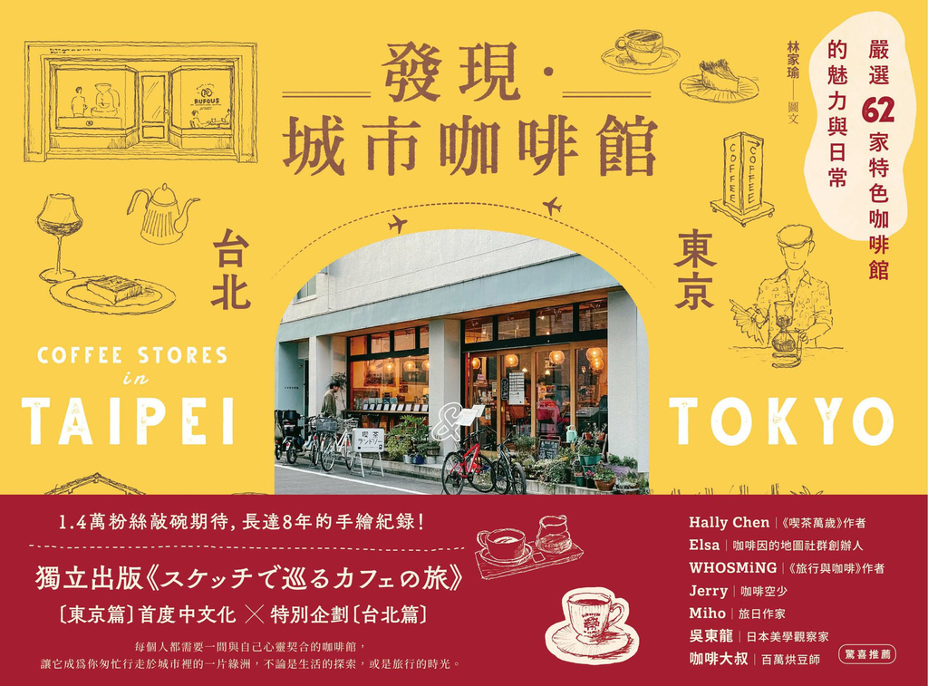 產品目錄 自序Part 1 台北篇【大安區、信義區】Congrats Café|信義安和站OASIS Coffee Roasters|信義安和站W&M Workshop|信義安和站RUFOUS COFFEE ROASTERS 2|六張犁站Moonshine Coffee Roasters|六張犁站MKCR Mountain kids chill & relax|六張犁站聲色 Soundsgood|大安森林公園站Jack & NaNa COFFEE STORE|古亭站VWI by CHADWANG|忠孝復興站COFFEE : STAND UP立良|市政府站小青苑 Cyan Cafe|市政府站【中正區、萬華區】Coffee Sind|忠孝新生站梅笑糧行 MAY SHOW CAFÉ|龍山寺站【中山區、大同區】點二咖啡|中山國小站鬧蟬咖啡 Now Chance Coffee|南京復興站After 5_步驟六|雙連站好人好室|雙連站好土:home to|雙連站二會咖啡廳|中山站Sconeholic司康中毒|台北車站Instil Coffee – Zhongshan|中山站別所 shelter|民權西路站AKA café|大橋頭站菸花《Op.118.2》|北門站【士林區、北投區】玄珠 SʏᴜᴀɴDʀᴇᴡ|士林站磨子 Mill|士林站ANGLE ll|明德站Goodman Roaster|石牌站【中和區、新店區、文山區】圈外咖啡 Kengai Coffea|永安市場站綠河 Green River Roastery|新店區公所站RUINS Coffee Roasters|木柵站Part 2 東京篇【墨田區、台東區、荒川區】喫茶ランドリー|森下站すみだ珈琲|錦糸町站BERTH COFFEE ROASTERY Haru|押上站Leaves Coffee Roasters|蔵前站FUGLEN ASAKUSA|淺草站HAGISO|千馱木站カヤバ珈琲|根津站ROUTE BOOKS|上野站from afar|田原町站ひぐらしガーデン|日暮里站Nui. HOSTEL & BAR LOUNGE|蔵前站【港區、澀谷區、新宿區、中野區】TOKYO LITTLE HOUSE|赤坂站Common|六本木站FUGLEN TOKYO|代代木公園站Nadoya no katte|代代木上原站地球を旅するCAFÉ|高田馬場站LOU|中野站【中央區、江東區】Turret Coffee Tsukiji|築地站Bridge COFFEE & ICECREAM|馬喰町站BERTH COFFEE|馬喰橫山站Single O Hamachō|水天宮前站Allpress Espresso Tokyo Roastery & Café|清澄白河站Tallskogen|清澄白河站TOKYOBIKE TOKYO|清澄白河站【目黑區、世田谷區】ONIBUS COFFEE 八雲店|都立大學站ONIBUS COFFEE 自由之丘店|自由之丘站カフェマメヒコ 三軒茶屋店|三軒茶屋站Yellow CAFÉ|三軒茶屋站【調布市、國分寺市】手紙舎 2nd STORY|柴崎站KURUMED COFFEE|西國分寺站胡桃堂喫茶店|國分寺站幕後花絮特輯 我如何將空間轉換成手繪平面圖玉蘭花計畫──玉蘭花特調咖啡|Coffee Sind台灣小農檸檬起司蛋糕|別所 shelter不只是咖啡大叔──Uncle Coffee的收藏櫃附錄:店家資訊索引