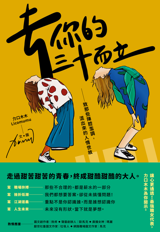 作者介紹 |作者簡介|力口木木 Licomumu資深品牌人、行銷人、內容創作者。畢業於世新大學廣播電視電影學系,美國舊金山藝術大學廣告系MFA藝術碩士。返台獲聘於台灣知名網路公司,空降擔任核心高階主管一職。同年開始經營自媒體及各大專欄寫作,後亦自創跨媒體主題品牌。曾榮獲《第六屆全球華人部落格》—年度最佳訊息觀點部落格—首獎;《第十六屆金手指網路獎》—最佳網站技術別—最佳使用者經驗大獎等多項大獎。本以為光鮮亮麗的職場生涯正要展開,不料反倒先一步接觸到人性醜陋那一面,遂將所有精采絕妙的遭遇,以圖文方式展現讀者面前,引起廣大共鳴。Instagram|請搜尋「licomumu」