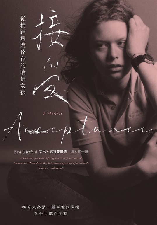 《接受》是一本筆調清晰、能定義整個世代的回憶錄,闡述作者艾米‧尼特費爾德從寄養家庭、無家可歸、從哈佛畢業,再到進入大科技公司工作的心路歷程,同時亦檢驗了社會對韌性的固戀及為此所付出的代價。