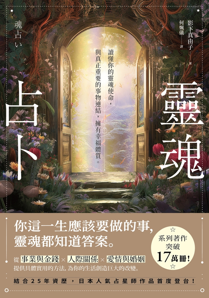 作者介紹 影下真由子 Kageshita Mayuko日本知名占星術師。大學畢業後在遊戲業界擔任創作者,之後轉行成為占卜師。2008年獨立創業,線上免費講座的學員累計逾10萬名,付費講座的學員則超過4千名,是十分活躍的占卜師及心理治療師,至今諮詢次數已突破1萬5千次。在業界競爭激烈的「大阪南區」從事占卜工作。第一家店開業之後,於短短三年內擴大到三家(截至2022年已擴展至四家)。除了預測未來,還能找出一個人與生俱來的潛力,為其改變現狀,開拓未來,因而深受好評,更有不少客戶是創業人士。著作《忌日占卜》,在2020年成為總銷量達10萬冊的暢銷書。▍譯者簡介何姵儀雖然不記得自己的靈魂曾在天堂許下什麼諾言,但是相信只要自己幸福,身旁的人也會跟著幸福的日文譯者。