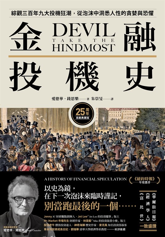 產品目錄 各界好評【引言】 別當最後一隻老鼠第1章 泡沫世界——投機的起源及1630年代鬱金香狂熱始於羅馬共和國/中世紀的金融投機/投機是愚者的遊戲/荷蘭共和國的鬱金香狂熱/勿忘黑色鬱金香寓言/鬱金香傳奇與後世的投機活動/嘉年華的精神不滅第2章 交易巷的股票買賣——1690年代的歷史重演信用就是金錢的時代/初期的股市及吹噓的公司/賭場裡的賭徒,股市中的投機者/頭飾高低與裙襬長短的象徵/政客的醜聞與腐敗/投機狂潮及金融危機/投機人性亙古不變第3章 南海泡沫——1720年英國破碎的計畫這場泡沫的開端/成為英國的密西西比公司/南海計畫的內部操作/別成為跑最後的一個/失控的野心摧毀了計畫/南海投機者群像/女性投機者文化/失序混亂的一場鬧劇/大夢初醒後的社會/理性與非理性的泡沫第4章 愚人金——1820年代的新興市場投資熱政府債券投機風潮/膨脹的南美礦業公司/天花亂墜的新型事業/經濟自由的政府難題/股市恐慌與經濟危機/南美事業幻夢的破滅/交易、信貸與投機循環第5章 蓄勢待發的運輸革命——1845年的鐵路狂熱從運河熱到鐵路熱/鐵路之王哈德遜/鐵路法案的考驗/狂熱的引燃與延燒/鐵路新股套利者/失控的列車危機/光環盡失的鐵路之王/似曾相識的鐵路與網路第6章 欺詐與癲狂——鍍金時代的投機交易美國夢與冒險精神/美國這個投機國度/南北戰爭與投機群像/新的交易所,從前的泡沫/籠罩全國上下的投機之網/古爾德的黑色星期五/庫克的黑色星期四/投機往往伴隨著操縱與詐欺第7章 新時代的終結——1929年華爾街股災與餘波政府本身就是大企業/抵押未來的消費風潮/證券經紀人推銷策略/操縱股票的投機者普爾/咆哮時代的眾生相/追捧新科技股票/誘人的槓桿/群眾的瘋狂/無情的復仇女神/陷入經濟大蕭條/在1990年代重現的新經濟第8章 牛仔資本主義——從布列敦森林協議到垃圾債券狂潮金融改革與資訊革命/經濟自由主義的復甦/衍生性金融商品革命/雷根政府革命/專業交易員的崛起/垃圾債券之王米爾肯的崛起/「金融界希特勒」降臨華爾街/10月大崩盤/政治腐敗與儲貸危機/1980年代的終結第9章 神風資本主義——1980年代日本泡沫經濟贏得和平並崛起的日本/企業投機循環/土地本位制的興起/廣場協議後的金錢遊戲/金錢政治/日本股市的價值/受操縱的股市/投機者之網/泡沫女帝尾上縫/新的鍍金時代/藝術市場的泡沫/高爾夫俱樂部會員狂熱/泡沫的破滅/銀行系統的崩潰/日本經濟體制的危機【後記】 失控的經濟學家致謝