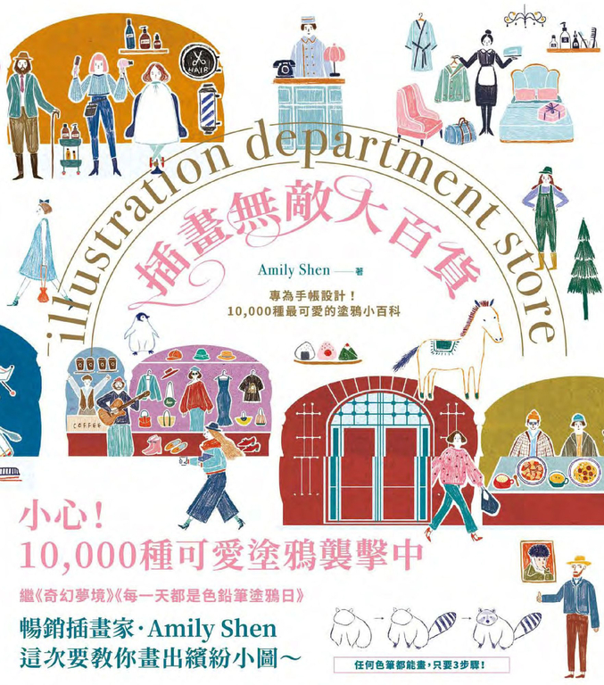 作者介紹 Amily Shen專職插畫家,合作出版多本童書,作品發表於書籍、報章雜誌,和各類商業合作。曾從事平面及網頁的設計工作,也擔任過鞋子設計師。但比起設計,更喜歡畫畫,喜歡將天馬行空想到的畫面,用文字、圖像記錄下來。於是在工作之餘,開始創作,同時在網路上發表個人的插畫作品。擅長電腦繪圖、手繪線條和色鉛筆風格創作,以鋼珠筆手繪為主的教學書《1000種可愛圖案★這樣畫最可愛!彩繪鋼珠筆的不敗帖》、《★最甜美!最華麗!超 越1000種的夢幻圖案★繽紛鋼珠筆的不敗帖》、《畫畫不敗!彩繪遊戲書》,在台灣、中國、韓國及泰國都是年度暢銷書。2015年出版的《奇幻夢境》著色書,以童話故事〈愛麗絲夢遊仙境〉為基底,全書百分百手繪原創,售出國際版權共16國。2018年榮獲JIA日本插畫大獎 (JIA Illustration Award) 佳作。facebook|請搜尋「只是一隻我 AmilyShen」Instagram|amily_shen