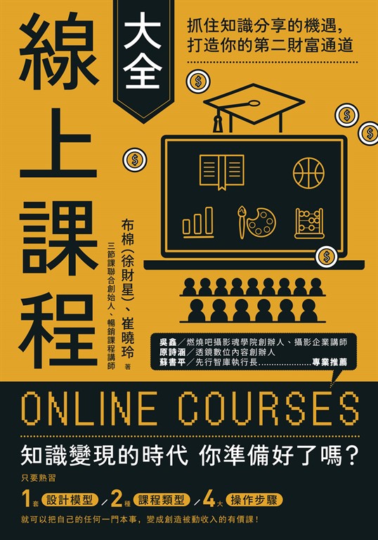 簡介 / | 線上課程大全 (電子書):知識變現的時代你準備好了嗎?只要熟習1套設計模型2種課程類型、4大操作步驟就可以把自己的任何一門本事打造成創造被動收入的有價課!看到身邊越來 |