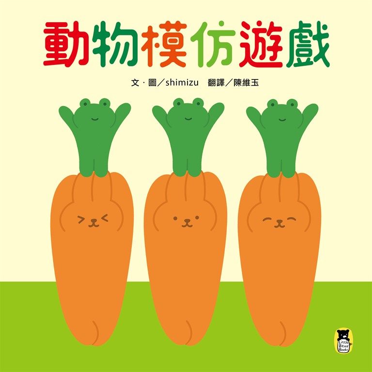 內容簡介 \推特超人氣畫家shimizu新作驚喜登場/★日本亞馬遜童書排行榜第一名★ 動物們最喜歡玩模仿遊戲了。 今天要模仿什麼呢? 企鵝和熊要模仿車子! 青蛙和兔子要模仿紅蘿蔔! 棕熊和白熊要模仿咖哩飯! 你也一起來玩遊戲吧! 你要模仿什麼呢? 繼大受好評的視錯覺繪本《再仔細看一看》之後,作者shimizu又再次展現他的超萌畫風,帶來了全新作品──《動物模仿遊戲》驚喜登場啦! 這一次,shimizu的作品透過「玩遊戲」,為孩子帶來不一樣的閱讀體驗。書中出現了企鵝和熊、青蛙和兔子、長頸鹿和小狗、海豹和魚等各種萌度爆表的動物組合,輪番上陣進行逗趣的模仿秀,例如黃色的長頸鹿將脖子彎成披薩的樣子,身上的紅色圓形斑點就像番茄片,四肢彷彿變成融化的起司,搭配棕色小狗伸展長長的身體,化身成披薩邊緣的餅皮,完全超乎想像!孩子可以在閱讀過程中仔細觀察動物的特徵,發揮想像力猜一猜動物們要模仿成什麼有趣的事物,更能獲得「大小」、「形狀」、「顏色」等概念! 除此之外,也能和孩子一起討論還有哪些動物組合,可以模仿成什麼?或是鼓勵孩子利用自身的肢體動作配合隨手可得的道具,想一想可以變身成什麼?讓孩子在玩樂中學習,盡情揮灑創意表現出獨特的想像力,延伸出更多不同的玩法,並透過這本繪本享受親子對話、遊戲、互動的溫馨共讀時光。