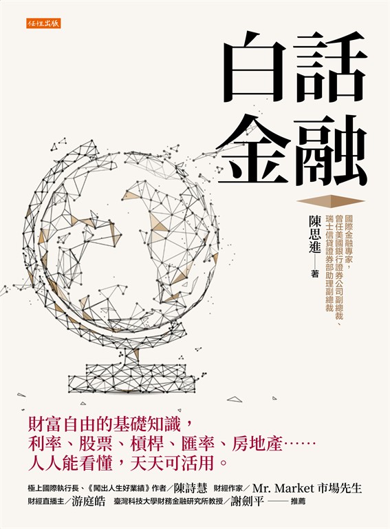 作者介紹 陳思進 國際金融專家,央視大型紀錄片《華爾街》、《貨幣》學術顧問。曾任美國銀行證券公司(BofA Securities)副總裁、瑞士信貸(Credit Suisse)證券部助理副總裁、宏利金融集團(Manulife Financial Corporation)資深顧問。 目前擔任某國際金融財團風險管理資深顧問。 著有《看懂財經新聞賺錢門道》、《看懂貨幣》、《金融讓誰富有》等書。