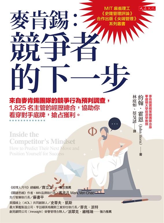 內容簡介 美國線上(AOL)共同創辦人/史蒂夫.凱斯 最大軍艦製造公司、亨廷頓英格爾斯工業卸任執行長/麥克.派特 創見顧問公司(Innosight)榮譽管理合夥人/派翠克.維格瑞 共同推薦 ◎當Disney+帶著累積百年的內容進軍串流,早就占領市場的Netflix怎麼因應? ◎百威啤酒推洋芋片,成功打進小酒館,為何在進駐便利店時被樂事打趴? ◎某競品市占率從29%增至33%,另個從31%跌至27%,哪個對自家威脅更大? 多數公司認為,他們經常蒐集競爭者情報,但等到對手真正出招時, 很多老闆(超過80%)的反應卻是: 「他們瘋了嗎?這樣做很不理性呀!」(很驚訝) 「不用擔心啦,這樣做根本沒有邏輯。」(很不屑) 但這些不理性、不合邏輯的行為,總是出乎意料的搶占市場。為什麼? 作者約翰.霍恩(John Horn)目前是華盛頓大學經濟學教授, 他在麥肯錫策略實務團隊長達9年,負責企業策略演練, 幫助一百多個客戶舉辦商戰競爭遊戲工作坊,了解「對手到底在想什麼」。 本書就是他透過《麥肯錫季刊》的調查,遍訪全球1,825名高階主管, 彙集過去幾年面對競爭者突然出招時的因應流程。 ◎再不理性的策略,背後都有規則可循 ․聽聽對手說什麼,老闆、發言人在各種場合的用字,都是線索 執行長說考慮擴展印尼市場,亞太負責人卻在談越南,哪個才對? 研發人員在產業會議發表腫瘤藥物,公司的新聞稿卻大肆宣揚心血管藥物? 這是公司內部訊息混亂,還是故意誤導你,怎麼判斷? (同理:法說會、新聞稿、公開發言,你都信?) ․查查他們有哪些資產和資源?可以玩什麼把戲? 對手說要將產品拓展到某國家,搶攻市場, 但他們在該國根本沒有行銷人員,也沒經銷商,怎麼辦到? 作者戲稱這一步叫「看看他們可以玩什麼把戲」: 你可以從財報、市占率、經銷商等資訊,來思考對手的行為動機。 ◎競爭者會從哪裡冒出來──破解不同類型的對手 ․來自相近產業的入侵者──多關注業務範圍,那是對方的競爭優勢 Google旗下的YouTube、Android、Google地圖,都主打網路搜尋服務, 如果你的業務雷同,就得留意這些部門的變動會對你造成什麼影響。 ․創業者背景調查──從他的經歷推敲思維路線 查看創辦人的LinkedIn個人頁面,了解他之前創辦過哪些事業?成功嗎? 是連續創業還是首次創辦公司?團隊都是什麼背景的人? 了解創辦人的資歷,就能推敲出他們的思維模式及處理業務的方法。 (同理:各國的經濟部商業司網站、私營求職網也是線索來源。) 很多時候,我們不可能直接與競爭對手交談, 就像考古學家無法向恐龍提問,怎麼辦? 利用黑帽演練、商戰遊戲: 用6個W(人、事、時、地、原因、方式)設定演練內容。 或在公司裡成立競品分析團隊: 每個部門指派一位同事加入,並把團隊設在最能影響公司的部門之下, 每次策略會議提出分析報告,弄清楚你跟對手「哪裡不一樣」。 那些怎麼想都覺得對方不理性的策略,背後都有規則可循, 來自麥肯錫團隊的競爭行為預判調查,1,825名主管的經歷總合, 協助你看穿對手底牌,搶占獲利。
