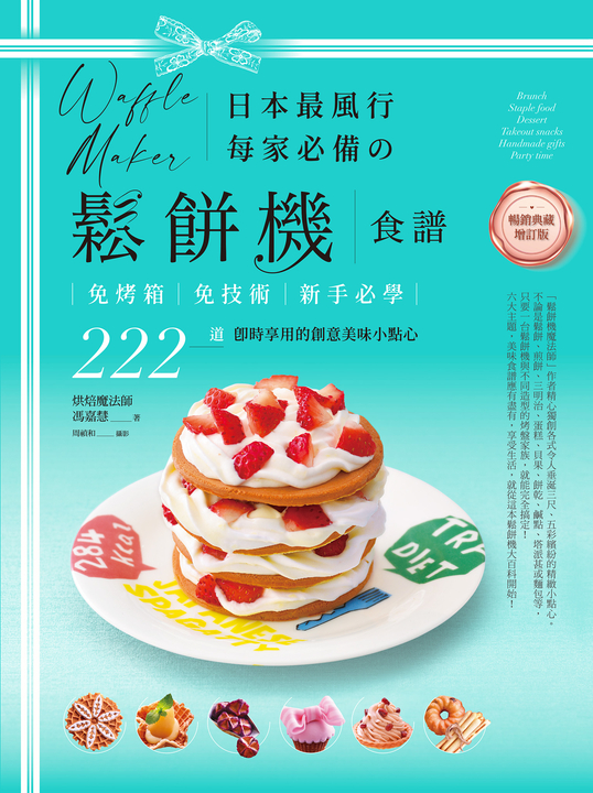內容簡介 絕對空前,全台最專業、最受歡迎的鬆餅機百科!開創鬆餅機不只是只能做鬆餅的新思維,即使初學者也可以大顯身手!免烤箱,免技術,不用10分鐘,222款餅乾、蛋糕、塔派與甜鹹點應有盡有,輕鬆愜意享受悠閒生活,給自己、家人與朋友最美好的驚喜,就從本書開始! 疫情期間的您是否焦慮在家能做什麼呢?不要再當沙發馬鈴薯了!除了規律地運動之外,不妨趁此機會增加西點技能也是不錯的選擇唷! 現代人流行吃早午餐,每天只要花不到10分鐘烘焙時間,即可在家享用Brunch!可以簡單地做出花卉裝飾、卡通造型妝點在甜點上增添視覺效果。假日時,父母可以與孩子兩兩組隊PK,除了品嘗彼此喜愛的點心,更能增加親子之間的互動。 作者精心獨創222道垂涎三尺、五彩繽紛的精緻小點心。不管鬆餅、煎餅、捲餅、三明治、蛋糕、貝果、漢堡、餅乾、鹹點、塔派、日式點心與各式甜品,甚至麵包等,只要一台鬆餅機與不同造型的烤盤家族,就能完全搞定!六大主題,各式美味食譜,應有盡有,享受健康自在的悠閒生活,就從這本鬆餅機大百科開始!本書特色:★免烤箱!免技術!即使是初學者只要一台鬆餅機並搭配不同造型的烤盤,每天花不到10分鐘,就能製作出上百道各式各樣的食譜。★六大主題,內容豐富完整,您可依不同需求挑選適合自己的小點心,無論是鬆餅、煎餅、捲餅、三明治、蛋糕、貝果、漢堡、餅乾、鹹點、塔派、日式點心與各式甜品,甚至麵包等,都能輕易完成。★每道料理及常用餡料都由作者實際操作,2200張照片超詳細圖解,加上正確的材料與完整的分解動作,讓您事半功倍。★從為家人做點心為出發點,書中每道點心都有作者的心情小筆記,與您一起分享做點心的心得與注意事項。★附有各種烤模食譜索引,讓您能以自己的需求,快速找尋到自己想做的點心。