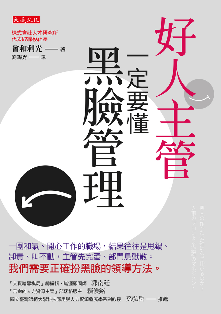 內容簡介 「人們誤以為最好的工作,是那些始終帶給你快樂的工作。我認為這是不對的。」──AI教父黃仁勳◎好公司的定義就是,組織裡的每個人都和諧相處沒有衝突。◎這主管居然重罰自己的愛將,太沒人性了,以後誰還敢跟他共事。◎彈性工時、遠距上班,這公司果然是友善職場、幸福企業。◎這企業的老闆居然沒願景,員工離職率還偏高,看來不能久留。 以上這些看法,你全認同?當心這些觀點對你傷害最大。 職場裡,總有刻意迎合對方、不願得罪任何一方的好人;也有願意扮黑臉,認為只要是對的就該說出來,為了糾錯而得罪人的孤勇者。多數人只喜歡說好聽話的白臉,厭惡直指痛處的黑臉,很多好人主管,為了「團隊精神」、「凝聚」、「和諧」,刻意要創造一個大家開心工作的友善職場;然而……日本資深人力專家曾和利光以超過20年的經驗指出,那種不敢說出「其實國王沒有穿衣服」的好主管或是好部屬,正是導致團隊毫無作為、不知錯不能改、拖垮組織成長、甚至走向解體的元凶。所以,尤其是主管──得敢扮黑臉,不然你會自己做到死也沒人感激,更要親身示範部屬,如何正確的扮黑臉──而非冷言冷語吐槽譏諷,才得以造就出自動自發、主動完成工作的部屬。◎友善職場會扼殺人的成長:‧友善職場麻煩多,遇到紅燈「一起過」: 新人事前不做功課,對公司政策亂插嘴,主管還好心花時間解釋, 這才是真的浪費時間。 做決策時,如果太多不相關的人參與,大家都說「沒意見」, 就會忽視風險:無視紅燈存在,反正大家一起過。‧彈性工時看似友善,主管更累: 「在家工作」、「遠距上班」看似人性卻同時暗藏陷阱, 因為很多需要親身體會的技能,主管將無法傳承,遑論培育人才。 一群人在家工作的結果,是導致另一群人、甚至主管自己,得在公司充當助理: 做複本、列印、叫快遞、聯絡廠商、找失蹤的電子簽呈……。 ◎「人」的管理,不外乎這幾種誤解:‧無人離職、一團和氣的組織才是問題: 員工離職率高,就是差勁公司?錯,成員數年不變,反而很難有新想法。 如果你的產業變化激烈,更需要難搞的創意人才激出新想法。‧「自由真好」是騙人的: 過度提倡員工自主,部屬反而會抱怨主管: 「什麼都不指示」、「什麼都不教」、「什麼道理都不明示」。那麼,「等待指示」和「自由發揮」的界線在哪裡?為什麼員工對環境敏感(扮黑臉)是好事,主管如何重用這種人?負責對外招募的人資要勇於說哪種謊?有時還要鼓勵員工說三道四?辦公室戀情其實有好有壞,如何處理?不該視離職者為叛徒,如何讓「畢業生」變盟友?一團和氣、開心工作的職場,對你傷害最大;部門裡正確扮演黑臉的人越多,成效越高,主管更輕鬆。