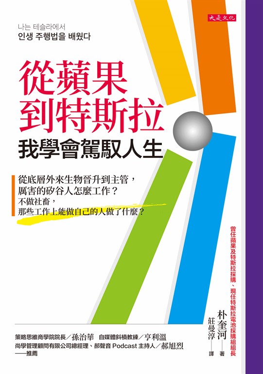 作者介紹 朴奎河 在稱為「夢之職場」的蘋果和特斯拉累積職涯。 畢業於韓國漢陽大學電子工程系,並完成半導體碩士課程。畢業之際,透過新聞得知LG化學(現為LG能源解決方案)被選為通用汽車的電池供應商,進而看到該產業的未來。身為LG化學研究所的工程師,先是以開發電動車電池系統為主,而後在總公司商品企劃組負責戰略、營銷、項目管理等業務,近距離目睹國內外電動車產業的成長。 之後前往耶魯大學就讀MBA。入學後,滿腦子只想著電動車和特斯拉,被同學們稱作「特斯拉先生」。最終,成為耶魯大學MBA首位特斯拉實習生,不僅協助規畫超級工廠,還學到該企業的成長祕訣和執行力。畢業後,投身採購士官學校──蘋果,負責顯示器和傳感器等採購業務。 2019年,特斯拉成功啟用上海超級工廠,需要電池採購專家,聽到此消息後,他決心跳槽。他以過往累積的各種經驗為基礎,成功完成上海超級工廠的電池項目,為特斯拉的全球商務做出了飛躍性貢獻,同時晉升為電池採購組組長,並成為特斯拉的核心人才。