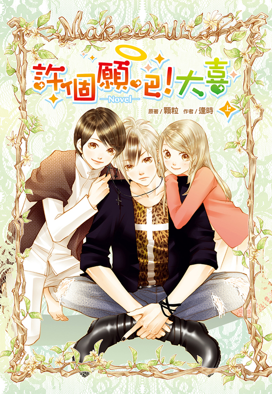內容簡介 高大喜,惡名昭彰的不良少年,戴天樂,病弱垂危的堅強女孩,病房初遇的同時,也直接邁入滴答倒數的永別……而後,大喜在醫院認識了自稱是天使的男孩──「達成我說的條件,我就實現你的願望!」面對天使的承諾,大喜的願望會是……?像春日詩歌柔柔攻占你的雙耳,像冬日暖流緩緩洗滌你的雙眼,如果遺忘不了這雋永的揪心滋味,不妨一品顆粒老師原著、逢時老師執筆──風味相同、口感有別以往的《許個願吧!大喜》小說版!