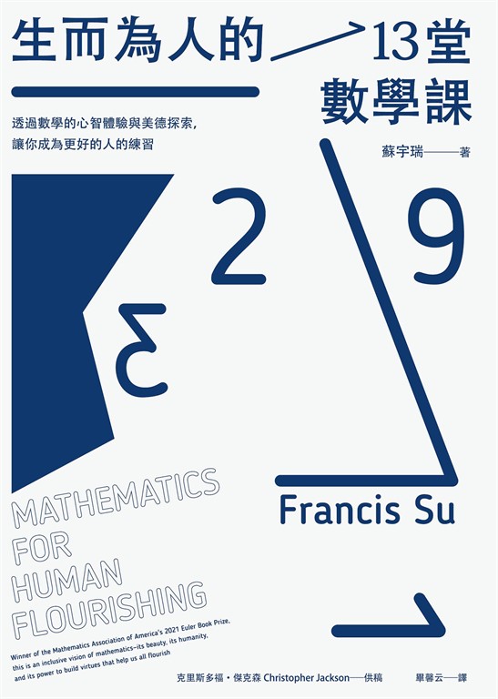 內容簡介 「這可能是我們這個時代最重要的數學書」2021年美國數學協會歐拉數學著作獎(Euler Book Prize)獲獎作品――――――★美國數學協會首位華裔主席最動人之作,在數學裡實現不一樣的自己!★個人反思、寓言與謎題交織,深入探索數學與生而為人的深刻連結!★用故事切入,從解謎探索,翻轉僵固型思維!★Amazon 4.7顆星、Goodreads 4.4顆星,讚譽不斷!▌好評圓滿推薦王夏聲 ∣ 國立陽明交通大學應用數學系副教授任維勇 ∣ 北一女中數學老師李信昌 ∣ 數學網站「昌爸工作坊」站長李政憲 ∣ 林口國中教師、教育部師鐸獎得主、「藝數摺學」臉書公開社團創辦人林信安 ∣ 建中數學科教師洪士薰 ∣ 台南女中數學教師洪雪芬 ∣ 超腦麥斯創意思維數學課程總監翁秉仁 ∣ 國立臺灣大學數學系副教授高敏慧 ∣ 臺北市民生國中校長、臺北市數學輔導小組副召集人康明昌 ∣ 國立臺灣大學數學系名譽教授、前國立臺灣大學理學院院長許德田 ∣ 新北市國民教育輔導團國小數學領域召集人、新店國小校長陳國璋 ∣ 國立清華大學數學系與通識中心教授單維彰 ∣ 國立中央大學數學系與師資培育中心教授賴以威 ∣ 臺師大電機系副教授、數感實驗室共同創辦人蘇恭弘 ∣ 臺南市創思與教學研發中心專任研究教師我們不是數學機器。我們活著,我們呼吸,我們體會。我們是具有形體的人類。如果數學沒有連結到人類的某種渴望,不管是遊戲、追尋真理、追求美、尋找意義或是為正義而戰,為什麼還有人要學數學呢?這本書不談數學多麼偉大,儘管數學確實是輝煌的志業。這本書也不特別關注數學可以做什麼,儘管不可否認數學可以做很多事情。這本書要讓數學建立在生而為人、活出更圓滿人生的基礎上。對數學家蘇宇瑞來說,沒有數學喜好的社會,就像沒有音樂會、公園或博物館的城市。錯過了數學,就是生活中沒有領略過一些最美麗的觀念。蘇宇瑞小時候接受填鴨教育,大學時代被視為「沒數學天分」而放棄。但他後來不但成為數學家,還擔任美國數學協會主席。他揭露數學不是一種天才,而是一種探索的美德。這本博大精深的著作是為廣大讀者而寫的,尤其是為那些因過往經驗而不抱幻想的人所寫。在書中,這位屢獲殊榮的數學家暨教育工作者編寫出寓言故事、謎題及個人省思,告訴大家數學如何滿足人類的基本渴望,如何培養讓人圓滿幸福的重要德行。這些渴望和德行,以及書裡講述的故事,都透露了數學與生而為人的密切關係。有些教訓來自那些曾經奮力搏鬥過的人,包括克里斯多福・傑克森,這位關在美國聯邦監獄裡的囚犯發現了數學。克里斯多福寫給作者的信貫穿全書,顯示了這種知識活動能夠且必須向所有人開放的方式。數學讓我們看到人類的潛能,它所揭露的事物可能面貌遠比眼前看起來更多。▌教授與囚徒,做數學的藝術與圓滿人生的練習■ 第1堂課:圓滿幸福 為什麼要做數學?答案是:數學可以助人圓滿幸福。適當地做數學可培養出助人圓滿幸福的德行,而且可能是以一種與眾不同的方式培養出來。 故事:你不具備成為有成就的數學家的條件「囚犯與教授」 謎題:切布朗尼蛋糕、切換電燈開關■ 第2堂課:探索 做數學的核心意義是探索和理解。探索會培養想像力的德行,設想新的可能性。探索培養你對魔力的期待,感受發現意外事物的刺激感。 故事:井字遊戲的策略思維「偷策略論證」 謎題:「整除」數獨■ 第3堂課:意義 尋求意義,會建立起重要的德行。首先是建構故事的德行,其次是抽象思考,另外還有鍥而不舍和深思熟慮的德行。數學是模式的科學,也是銜接這些模式的意義的藝術。 故事:畢氏定理的啟示「困在高架橋下的卡車」 謎題:紅黑撲克牌魔術、水與葡萄酒■ 第4堂課:遊戲 數學把心智變成它的遊樂場,好好做數學就是在玩某種遊戲:探索模式,然後運用歸納推理。數學遊戲會建立起努力拼搏的信心,培養改變視角的能力。 故事:從魔術方塊到躲貓貓、從球類比賽到音樂和弦 謎題:幾何問題■ 第5堂課:美 數學之美只會對有耐性的追隨者展露:感官之美,絕妙之美,洞悉之美,超凡之美。追求任何一種美,都會在我們身上培養出深思熟慮、喜樂與感恩和超凡敬畏的德行。 故事:碎形、歐拉公式與雪梨歌劇院 謎題:棋盤問題■ 第6堂課:永恆 永恆是全人類的渴望,數學探險家喜歡常數,尋找不變量。我們之所以追尋永恆,是因為永恆是個慰藉,是衡量人生歷練的準繩,也是我們可以信賴的立足點。 故事:法蘭絨襯衫與「我慢」的哲學 謎題:鞋帶鐘■ 第7堂課:真理 求真是人的基本渴望,對於深入了解與深究數學真理的追尋,可培養出許多生活領域的德行:獨立思考、嚴謹思考、審慎、面對知識時保有謙遜、認錯。 故事:謊言與真相 謎題:魏克禮拍賣(次價密封投標拍賣)■ 第8堂課:努力 追求成長的努力是數學閱歷中最吸引人之處。主動解決問題、不斷試驗各種策略、樂意冒險,這種纏鬥會培養沉著的品格,獲得解決新問題的能力,建立自信,達到嫻熟。 故事:論文作弊的誘惑 謎題:五連塊數獨■ 第9堂課:力量 數學力量強大:解釋的力量、定義的力量、抽象化的力量、視覺化的力量、想像的力量、制定策略的力量、建構模型的力量、多重表徵的力量、推廣的力量、結構辨識的力量。 故事:撲克牌的數學實踐 謎題:權力指標■ 第10堂課:正義 尋求正義可以