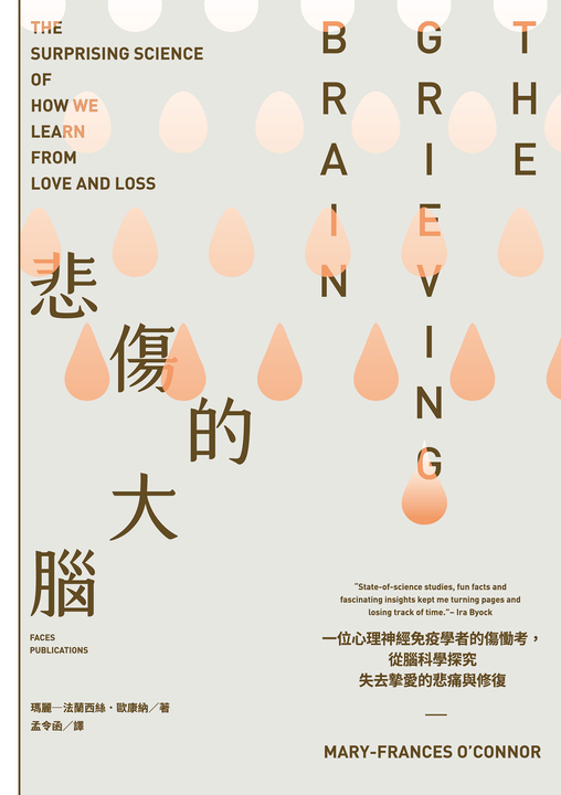 作者介紹 姓名:瑪麗-法蘭西絲.歐康納Mary-Frances O’Connor2004年取得亞利桑那大學(University of Arizona)臨床心理學博士學位,並在加州大學洛杉磯分校(UCLA)塞梅爾神經科學與人類行為研究所(Semel Institute for Neuroscience and Human Behavior)完成心理神經免疫學博士後研究。曾任教於加州大學洛杉磯分校卡森心理神經研究中心(Cousins Center for Psychoneuroimmunology),現為亞利桑那大學心理學副教授,主持該校「悲傷、失落和社會壓力實驗室」(Grief, Loss and Social Stress (GLASS) Laboratory),研究悲傷對大腦和身體的影響。成長於美國蒙大拿州(Montana),現居陽光明媚的亞利桑那州土桑市(Tucson)。