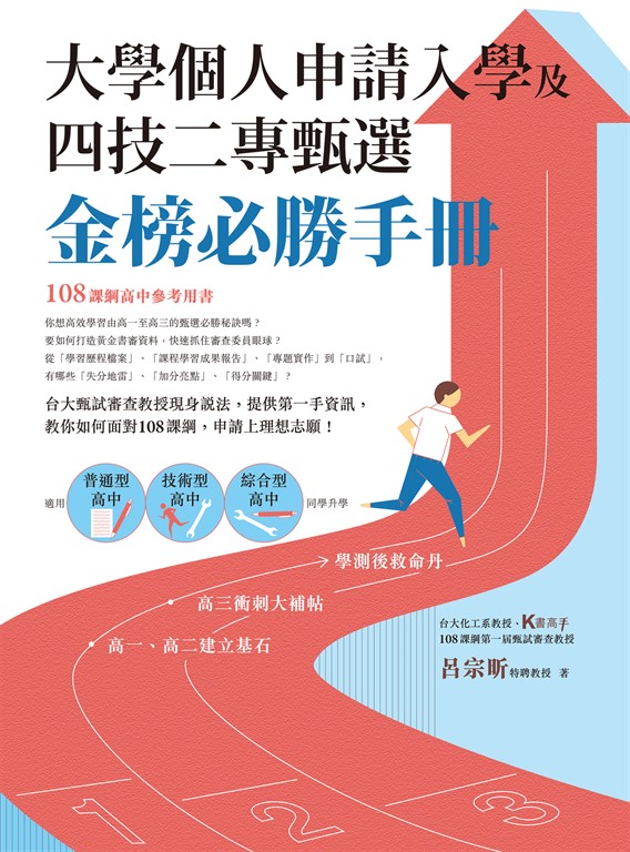 內容簡介 ──108課綱高中參考用書──學長姊留下的準備方法,還可行嗎?如何打造神人級黃金書審資料,快速抓住審查委員眼球?從「學習歷程檔案」、「課程學習成果報告」、「專題實作」到口試,有哪些失分地雷、加分亮點、得分關鍵?台大甄試審查教授現身說法,提供第一手資訊,教你如何面對108課綱,申請上理想志願!普通型高中、技術型高中、綜合型高中適用 大學申請入學、四技二專甄選◆高一、高二建立基石◆高三衝刺大補帖◆學測後救命丹四大特色,無痛征服大學個人申請入學、四技二專甄選★第一線的第一手資料作者為台大108課綱第一屆審查教授,從審查端的角度,解答高中學生、老師與家長的困惑,提供最實用的指南。★適用各類型高中生升學普通型高中、綜合型高中、技術型高中的同學,皆可使用這本手冊,內容不只包含大學申請撇步,還有專屬四技二專甄選的介紹。從上高中的那一刻,至高三衝刺期,各個階段都能帶來助益。★申請流程全方位完整說明高中時期該怎麼安排上傳與撰寫資料的進度?最關鍵的「六大黃金必備書審資料」是什麼,又該如何做好準備?口試時怎麼讓教授們留下好印象?書中不只各階段逐項說明,更濃縮成「加分亮點」、「得分關鍵」、「失分地雷」,重點不遺漏。★資訊視覺化、Checklist反覆確認因應新課綱申請時的變化,將知名大學、科大,不同類科系審查的書審重點,以圖表、數據列出,一目了然。搭配Checklist,從前期資料準備到後期申請面試,隨時都能自我檢視各項細節。七大方向,快速掌握新課綱申請重點◎你的必勝策略是什麼?驚喜上榜VS意外落榜,是發生什麼事?大學及四技二專升學管道,以及甄試所需準備的備審資料,一次報給你知。◎如何收集及分析必備書審資料?書審成績對甄試結果有多重要?千萬要儘早準備好「六大黃金必備書審資料」,以及能從甄選勝出的「三大法寶」。◎大學教授如何評量高中修課成績?解析書面資料審查的程序、大學教授評分備審資料方式。千萬別小看高中修課成績的重要性,它會左右申請結果!◎大學教授如何評量高中課程學習成果報告?「學習成果報告」到底對書審成績有什麼影響,寫的時候要注意什麼?揭開大學教授對「學習成果報告」的審查重點,以及常見學生誤踩的失分地雷。◎如何寫出可獲高分的「學習歷程自述」及「多元表現綜整心得」?公開「學習歷程自述」如何替自己加分,同時解說各類「多元表現」對書審成績的影響力,每一環節皆不可輕忽,應掌握每一項取分的機會。◎如何為口試做準備?面對易有變數的口試,你可以先做好各種準備,並打好應試心理建設,善用口試考場中的「得分秘訣」,回答切中要點,抓住教授們耳朵。◎給高一、高二及高三同學的建議針對高一及高二同學,說明如何積極提前做好準備;另特別針對高三同學,給予最後衝刺階段的重點提醒!在這本必勝手冊中,作者整理出大方向與大原則,助學生一臂之力,高效展現高中學習的成果,順利進入心目中理想的大學科系,完成人生進階的學習目標。