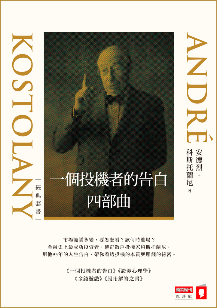 作者介紹 安德烈.科斯托蘭尼André Kostolany德國知名投資大師,嫻熟金融商品和證券市場的一切,被譽為「20世紀股市見證人」、「20世紀金融史上最成功的投資者之一」。1906 年生於匈牙利。13歲隨家人移居維也納後,開始著迷於歐洲各種貨幣的不同變化,從而展開其絢麗多彩的投機人生。他在德國投資界的地位,有如美國的華倫.巴菲特(Warren Buffett)。他的理論被視為權威,德國的投資人、專家、媒體記者,經常詢問他對股市的意見。18歲時,父親送科斯托蘭尼至巴黎學習股票,影響其一生的人生觀與金錢觀皆於巴黎建立,並立志成為百萬富翁。此後他持美國護照、在德國工作,歷經兩次世界大戰,遭逢兩次徹底的破產。但科斯托蘭尼說:「投機者要提得起、放得下。」每一次衝擊的谷底,都讓他彈跳得更高。70年代開始,科斯托蘭尼多了一個新頭銜「股市教授」,他開始在德國和世界各大都市的咖啡館中,教授股市知識和預測,上自王孫貴族,下至販夫走卒,都是科斯托蘭尼咖啡館講座中的學生。咖啡館講座回響熱烈,不但學生人數大增,連各大金融機構、銀行也爭相邀約演講,而科斯托蘭尼也成為德國、奧地利多所大學的客座教授。科斯托蘭尼不僅是成功的投資者,也是廣受讀者喜愛的作家。雖然在35歲就賺得足以養老的財富,但過人的精力,使他不甘就此退休,轉而發展第二事業,將自己的證券交易經驗與理論,寫成一本本實用且平易近人的書籍,廣受讀者喜愛與推崇。60年代以來,30 年筆耕不輟:《這就是股市》一書被翻譯成7 國語言,還拍成了電影,從此躋身暢銷作家之列;1991 年的經典之作《證券心理學》一書,更是德國大學經濟系學生必讀書籍。從1987 年以來共出版13本著作,在全球賣出300多萬冊的佳績,包括台灣、中國、韓國、希臘、丹麥,都有翻譯版本。此外他也是德國經濟評論雜誌《資本》的長期作者,供稿長達25 年。1999 年,見證百年金融發展的科斯托蘭尼因病辭世,留下財富給繼承者,但留下典範給所有的讀者。相關著作:《一個投機者的告白之證券心理學(新修典藏版)》《一個投機者的告白之金錢遊戲(新修典藏版)》《一個投機者的股市解答之書》