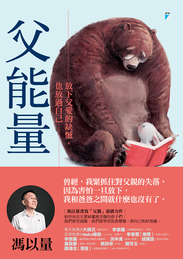 內容簡介 曾經,我緊抓住對父親的失落,因為害怕一旦放下,我和爸爸之間就什麼也沒有了。──────馮以量書寫「父親」重磅力作──────若時光倒流,回到你和父親曾有的揪心畫面裡,此時此刻的你會對當時的父親說什麼?假如父親回應了,他又會對你說什麼?●不顧家的父親、軟弱的父親、暴力的父親、離世的父親……父親缺席的我們帶著傷痛前行,生命中缺失的「父能量」,長大的我們如何為自己補回?【給所有在父愛缺憾裡受傷的孩子們】我們曾受過傷,我們要學習負責療傷,與自己和好相處。//故事從馮以量重壓心上的一段回憶說起:父親出殯當天,十三歲的他目睹亡父竟七孔流血,自此在心裡種下「我不孝」的內疚。無盡哀傷與對父親拋家的恨意生根纏結,磨耗他三十多年。由這份遺憾深入,他陪伴著成年兒女們一一去看見,人生中那輪迴般的痛、難解之苦,原來是內心深處的父愛缺憾從未被照顧。.她罵老公:「你不要像我爸那麼沒用!」又罵兒子:「為什麼你這麼像你爸?」──她渾然不覺自己複製了母親對父親的憤怒,並將這股憤怒帶進自己的家庭關係。.癌末的父親說:「我的女兒說她恨我,說她不需要爸爸。」──當孩子說「我不喜歡你」或「我恨你」,其實只是想告訴你:「我這麼愛你,為什麼都感受不到你給我的愛?」.父親懺悔:「我為過去的自己感到難過,也為我兒子感到抱歉。」──對兒子家暴的他,小時候是爸爸的暴力受害者;而他爸爸,幼年時也遭自己的父親施暴……//無論好壞,每一位父親都刻成了兒女的生命印記,即使長大也未曾消退。不是所有關係都能和解,也不是所有缺憾都能彌補。本書的如實述說,令人揪心,但我們終於有機會看清一位父親生命的全貌,理解父愛背後的承擔及侷限,進而能給自己更大的允許、更寬容的選擇,放下爸爸,也放過自己。本書特色:● 繼暢銷作《你背負了誰的傷》後,睽違兩年半,「馬來西亞家庭關懷及家族治療推手」馮以量──書寫「父親」──既揪心、又療癒的重磅力作。●「爸爸」這個稱號,只是父親眾多的身分之一;不是所有,只是「之一」。生命的慈悲不只是要給爸爸,也需要給自己──畢竟「孩子」這個稱號,也只是我們生命裡其中一個身分而已;不是所有,只是之一。● 這本書,獻給所有背負著父愛的缺憾,在生命中坎坷前行的我們:.【給成年子女】在你的生命裡,你的父親是否有做或沒有做一些重大的事件,影響了你往後的生命?.【給受傷的成年子女】在多年來,爸爸傷害你的經驗裡,你是否能看見這不是因你的錯而引起的?要是父親持續傷害你,你是否能堅持去拒絕?拒絕讓父親持續傷害你,是給自己一份學習,也是給父親一份教育。在這學習及教育裡,我肯定有更大的善意存在著。.【給喪父的成年子女】花一點時間,書寫一封信給你的父親。把這封信唸出來。不妨考慮對著天空唸出來,也可以在信任的親友面前唸出來。如果父親能同時聽見你寫這封信給他,他會給你什麼回應呢?.【給父母親】當一個孩子對你說:「我不喜歡父親」或者「我恨父親」,你覺得他在內心深處是想告訴你什麼訊息?.【給已婚的女性】你有沒有察覺到:你對先生的不滿及憤怒,有多少成分是從以前原生家庭對爸爸的憤怒而帶過來的呢?你如何阻止住在你腦海裡多年的那位父親,光明正大地住進你們夫妻倆所建立的家庭呢?.【給已婚的男性】父親對待你及你對待小孩,這兩者是一樣的嗎?還是不一樣?有哪些正面/負面的畫面,重疊在這三代裡?父親有哪一些美好的或不好的特質,你留給了自己,也傳給了小孩?● 馮以量:「這是我送給自己的一份見證生命成長的禮物,這一本書也是送給你的──所有在父愛缺憾裡受傷的孩子們,我們曾受過傷,我們要學習負責療傷。不管我的父親有多壞,我都想在內心留一個尊敬的位置給他。現在的我不再心痛父親沒有幫我的傷口搽藥了。我清楚地知道不管是膝蓋流血或者心靈痛苦,長大後的我要為自己止血、止痛。這樣做,無非是想要放下父愛的缺憾,同時也放過自己。如果你做得到,我衷心地恭喜你和我同行。然而,你目前做不到放下父愛的缺憾及放過自己,那也沒有關係,你就用你自己比較安心的步伐,陪著那個受傷的自己,繼續走下去。我相信每一個人都值得擁有美好的生命。我衷心地希望你會喜歡這本書,也希望這本書能夠陪一陪小時候的你。」(摘自作者自序)● 李崇建:「馮以量是我的典範。他的新作書寫父親,從自我揭露之始,帶領案主從無奈、無能,走到無盡深遠的愛,也經歷自己經驗的傷、自己覺察與體驗的接納,坦誠地面對自我的生命。他示範了生命如何從無望走向可能。這是一本療癒之書,也是一本教育之書,更是一本成長的手冊。謝謝以量帶來的啟發,為我示範了珍貴的圖像。」(摘自本書推薦序)● 大師兄:「在我心中,『負能量』曾經與『父能量』劃上等號,但是近幾年我一直在做的事情叫做「和解」。閱讀這本書的過程中,我不斷地在與自己對話:會不會是第一次當爸爸的他不知道如何當爸爸,於是他用自己的一生,來帶領兒子去適合他的地方呢?如何將負能量變成父能量?在這本書中,有很好的解答。」(摘自本書推薦序)● 書中內容的刊載有得到主角們的書面同意。基本背景資料稍有修改,作者保留和主角們的真實互動及對談內容。各界推薦:(依姓氏筆劃順序排列) 專文推薦:.大