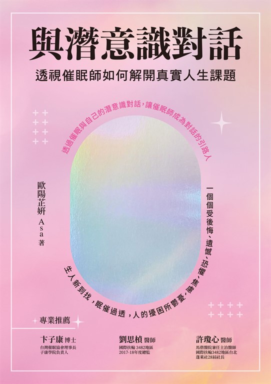 作者介紹 姓名:歐陽芷妍Asa擁有臨床催眠、美國NGH催眠講師、IACT催眠導師、NLP執行師等執照,現持續攻讀美國亞美利加天主教大學,應用臨床催眠系,博士生。起初學催眠是為了自我療癒,達到身心靈平衡,並透過催眠減輕身心科藥物。後來陸續獲取相關證照,並成立歐陽芷妍管理顧問有限公司,輔導不同個案、藉由演講把催眠介紹給更多人認識。在個體與集體催眠經驗不斷累積下,發現催眠確實能協助自律神經失調的困擾,認為催眠就像黑洞裡面的一束光,溫暖且科學,希望將這束光傳遞出去。